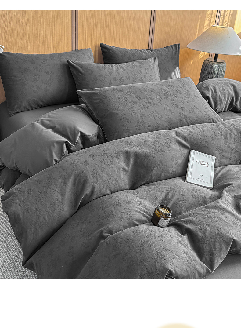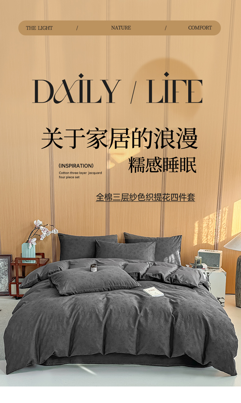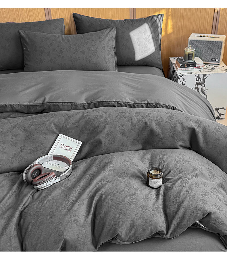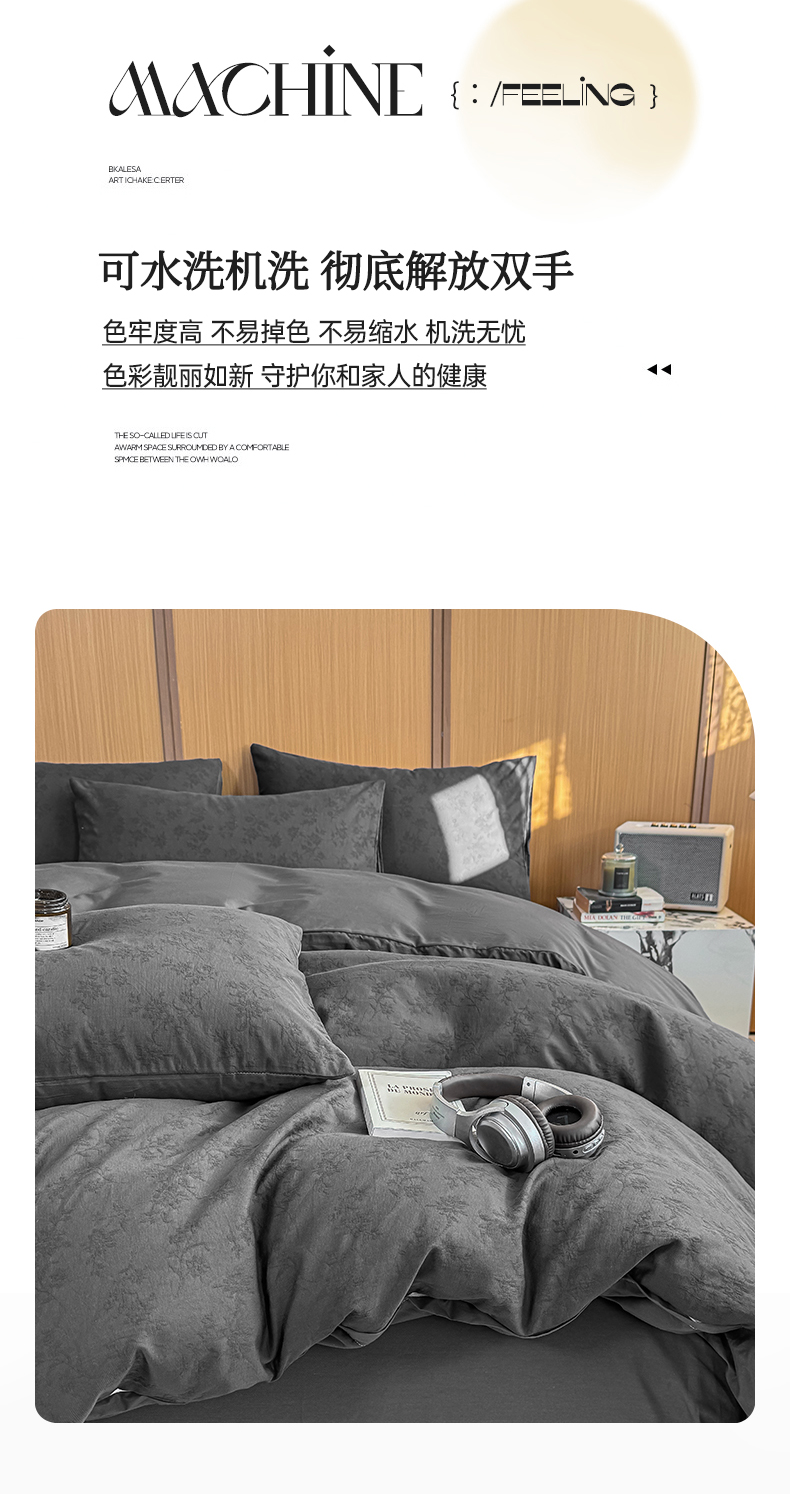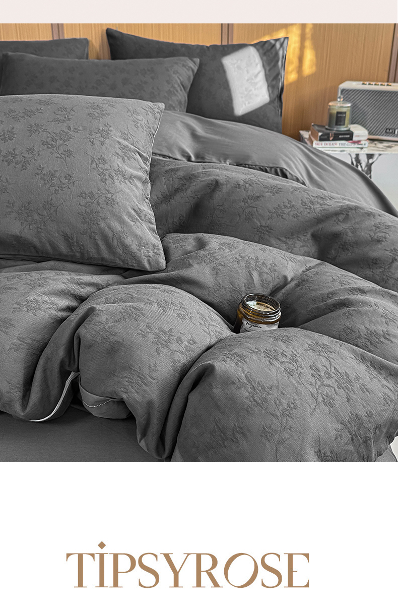 当前位置: 91家纺网 > 商品网购 > 床品套件 > 四件套 > 全棉普通四件套 > 灰鲸 2026新款全棉纯棉三层纱色织提花四件套 花影-素墨