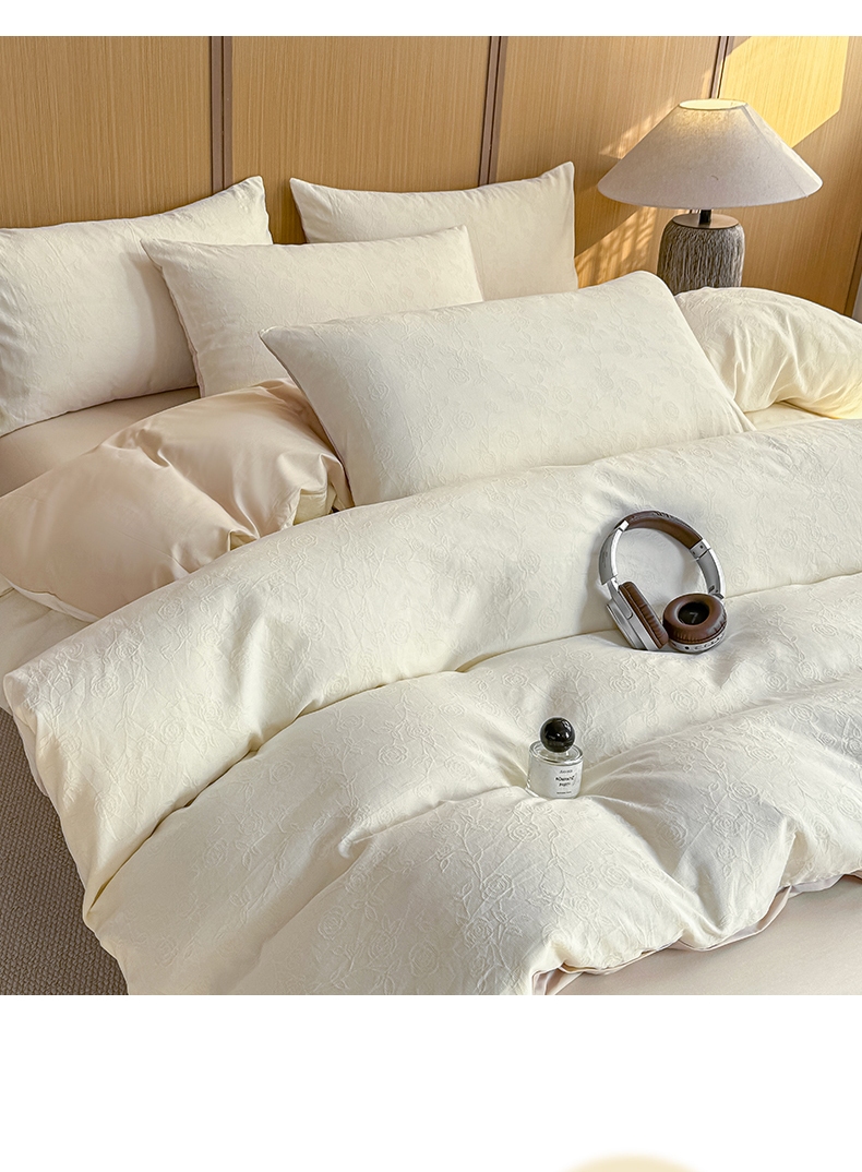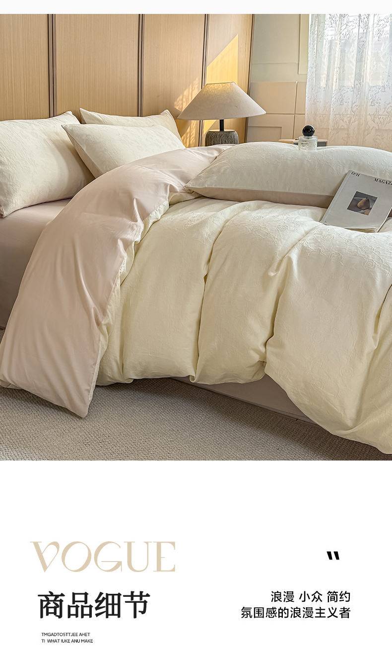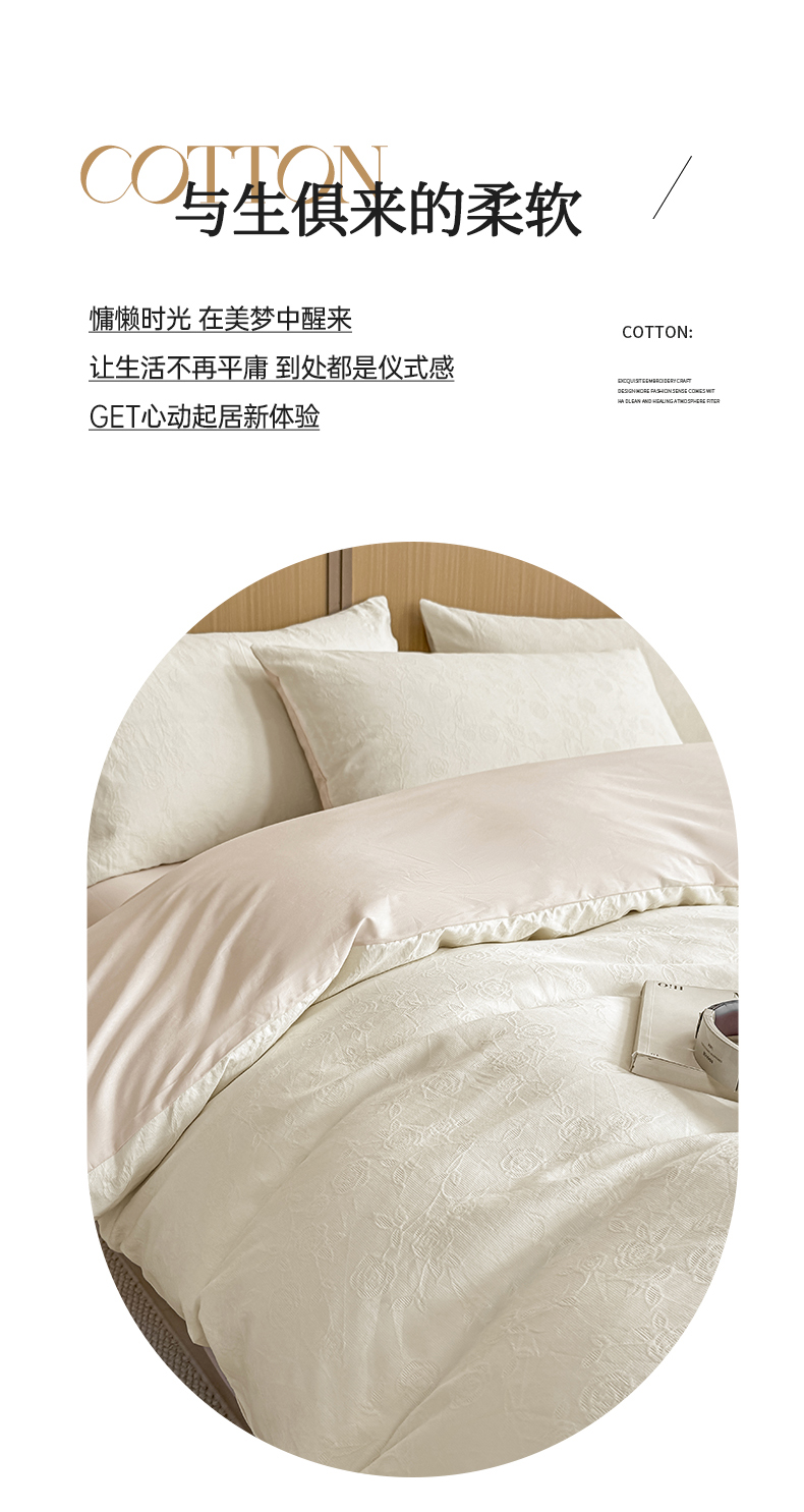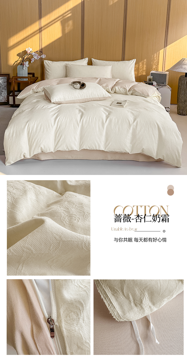 当前位置: 91家纺网 > 商品网购 > 床品套件 > 四件套 > 全棉普通四件套 > 灰鲸 2026新款全棉纯棉三层纱色织提花四件套 蔷薇-杏仁奶霜