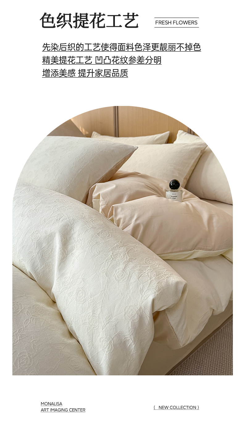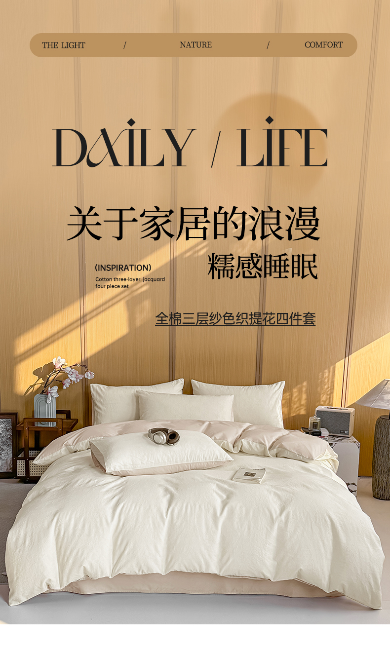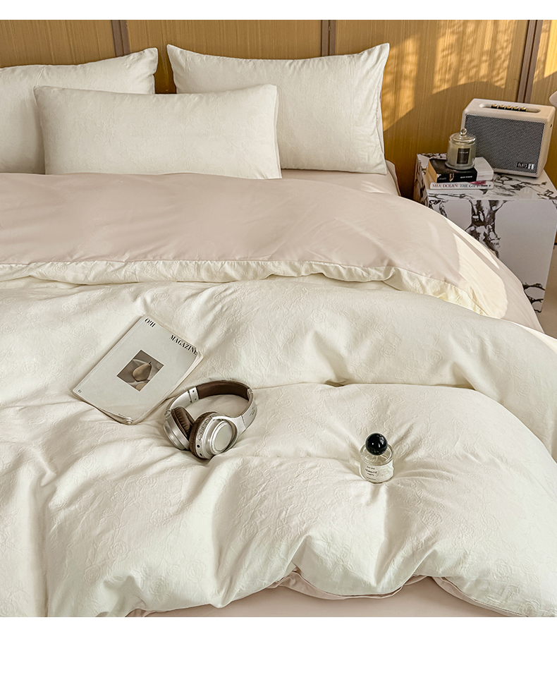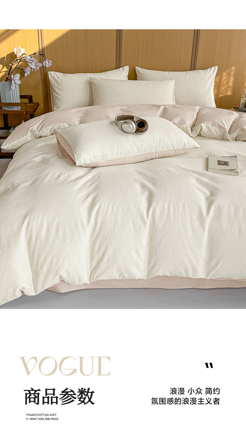 当前位置: 91家纺网 > 商品网购 > 床品套件 > 四件套 > 全棉普通四件套 > 灰鲸 2026新款全棉纯棉三层纱色织提花四件套 蔷薇-杏仁奶霜