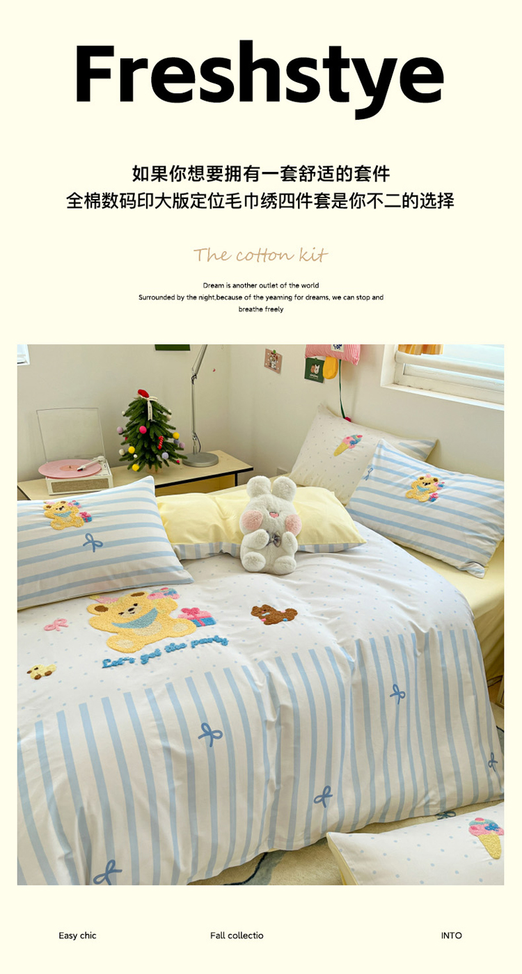 当前位置: 91家纺网 > 商品网购 > 床品套件 > 四件套 > 全棉普通四件套 > (总)丽涵家纺 2026新款全棉纯棉数码印大版定位毛巾绣四件套