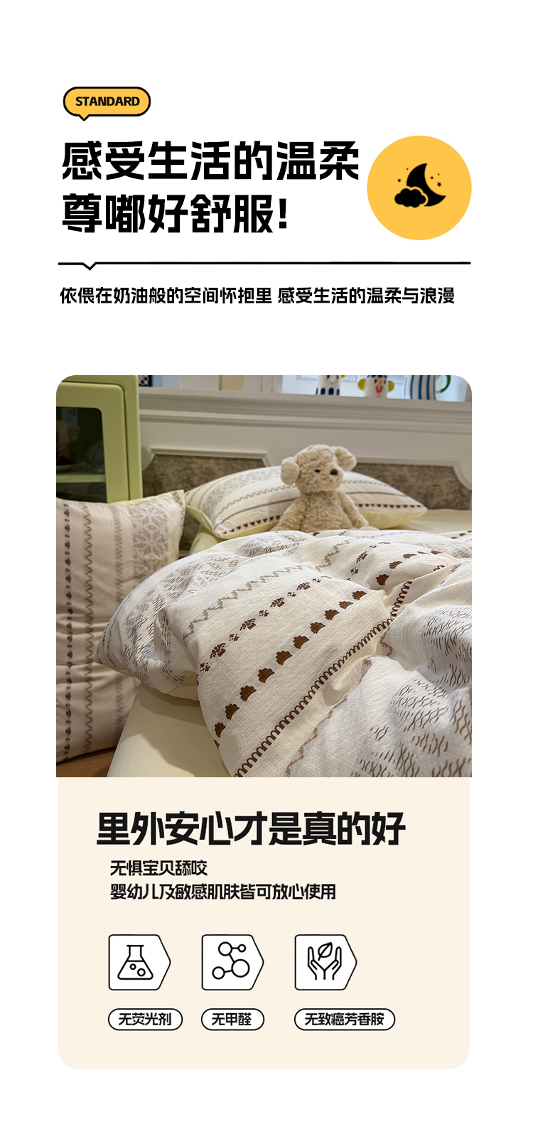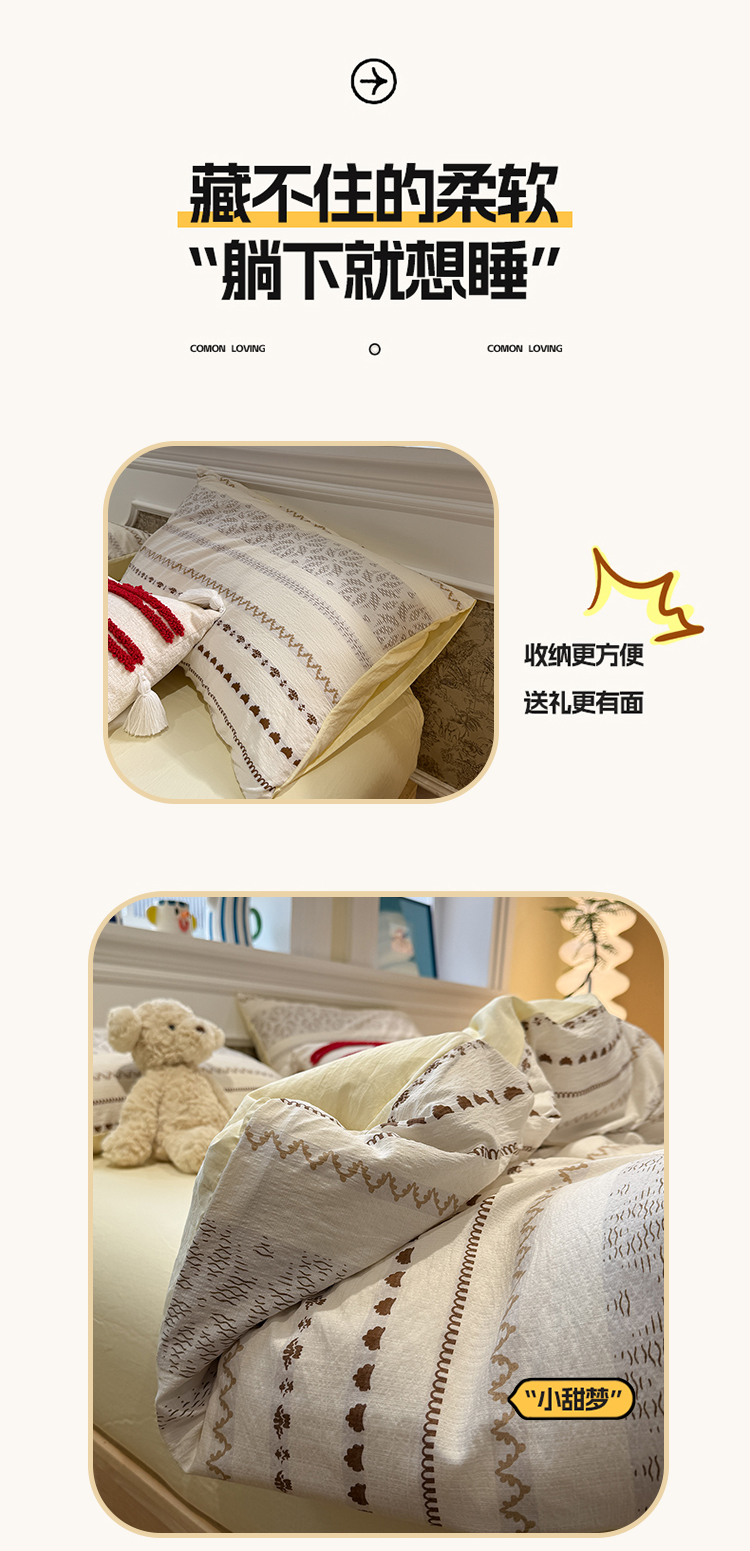 当前位置: 91家纺网 > 商品网购 > 床品套件 > 四件套 > 其它四件套 > 盼季家纺 2026新款简单款105g泡芙棉印花四件套-费尔岛 费尔岛系列-米基亚