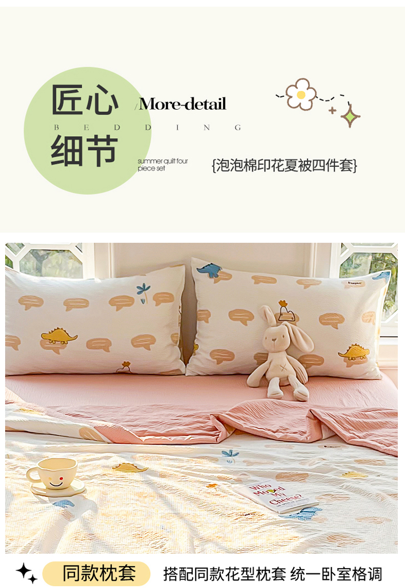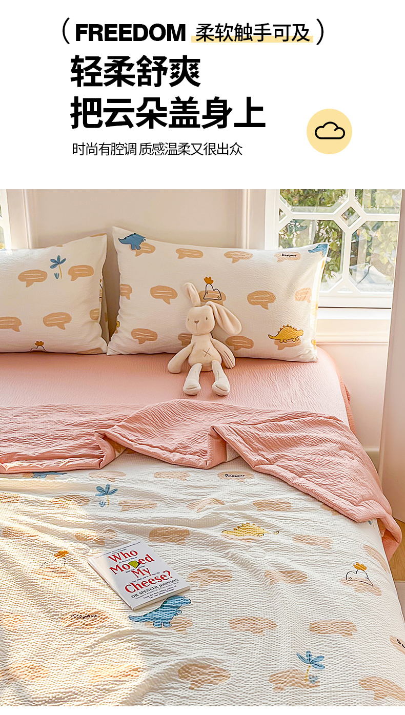当前位置: 91家纺网 > 商品网购 > 被子 > 夏被 > 默忆 2026新款A类泡泡棉夏被泡芙棉印花夏被四件套空调被夏凉被 恐龙世界