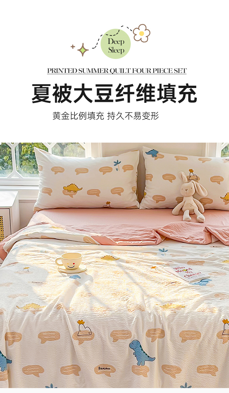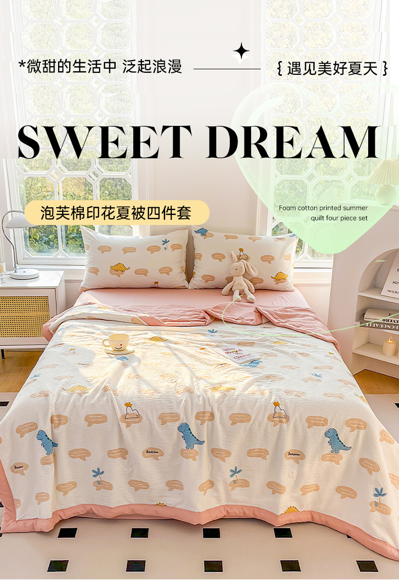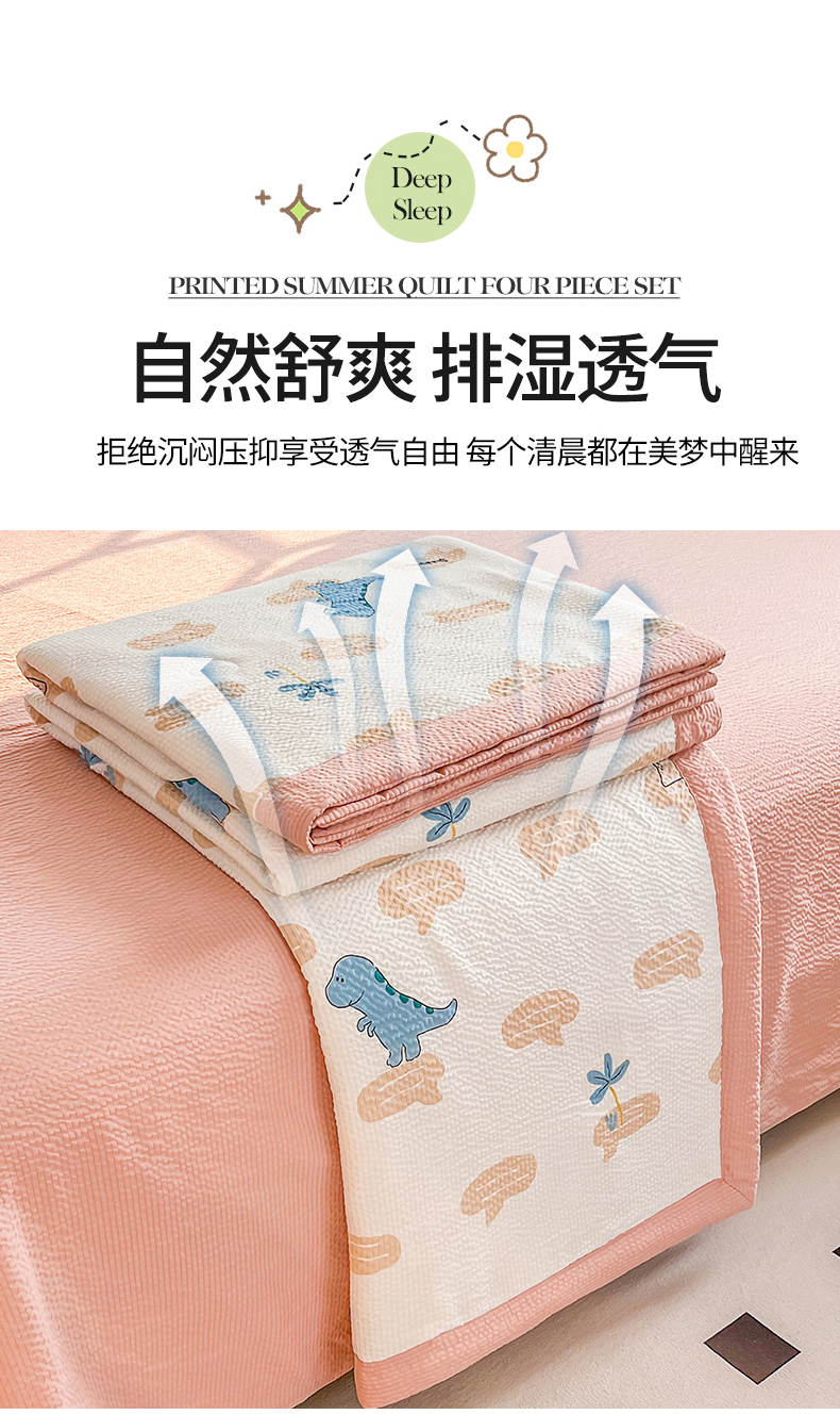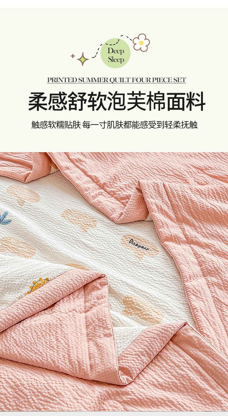 • 91家纺网 家纺一手货源 找家纺 默忆 2026新款A类泡泡棉夏被泡芙棉印花夏被四件套空调被夏凉被 恐龙世界