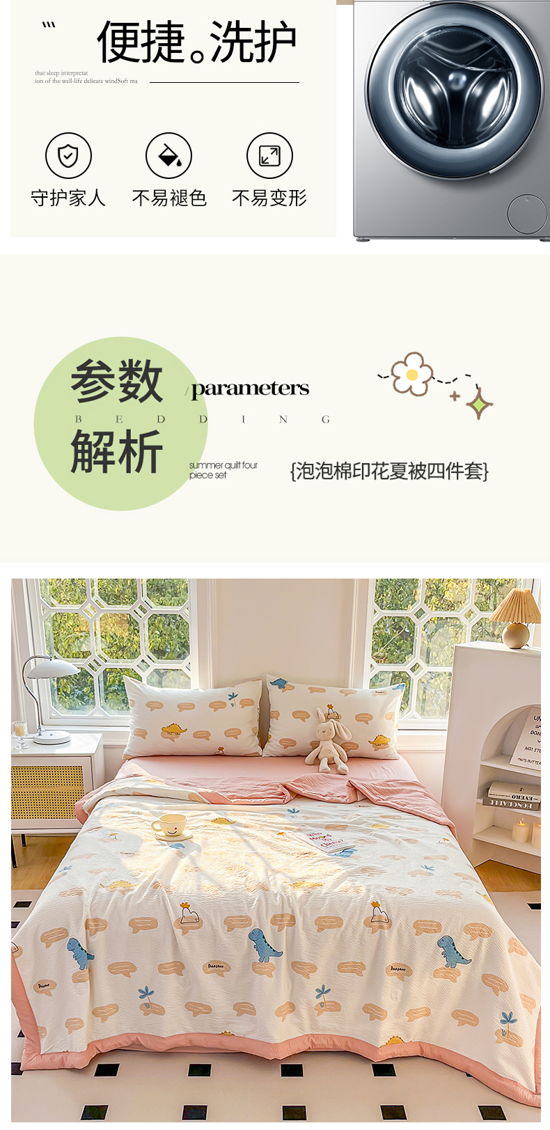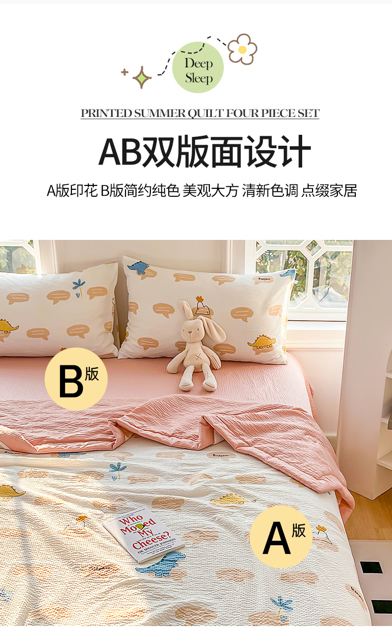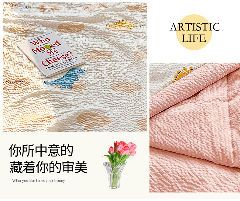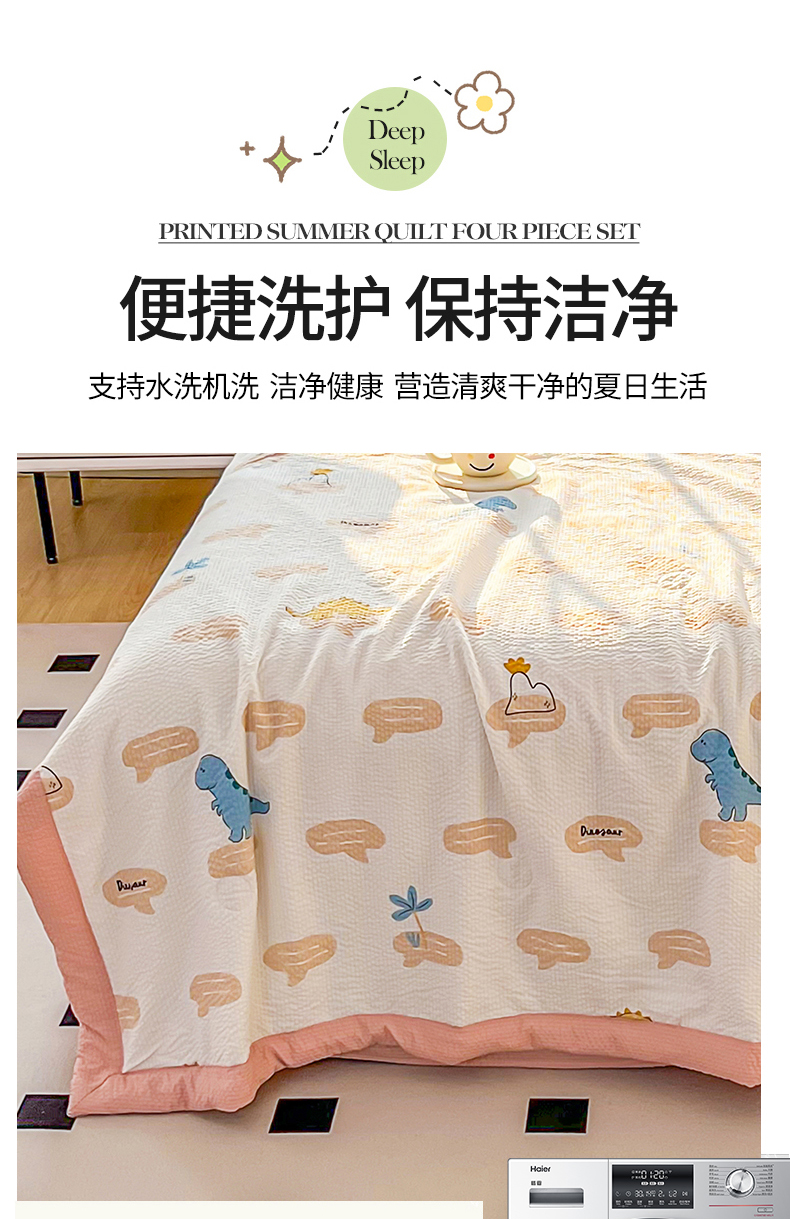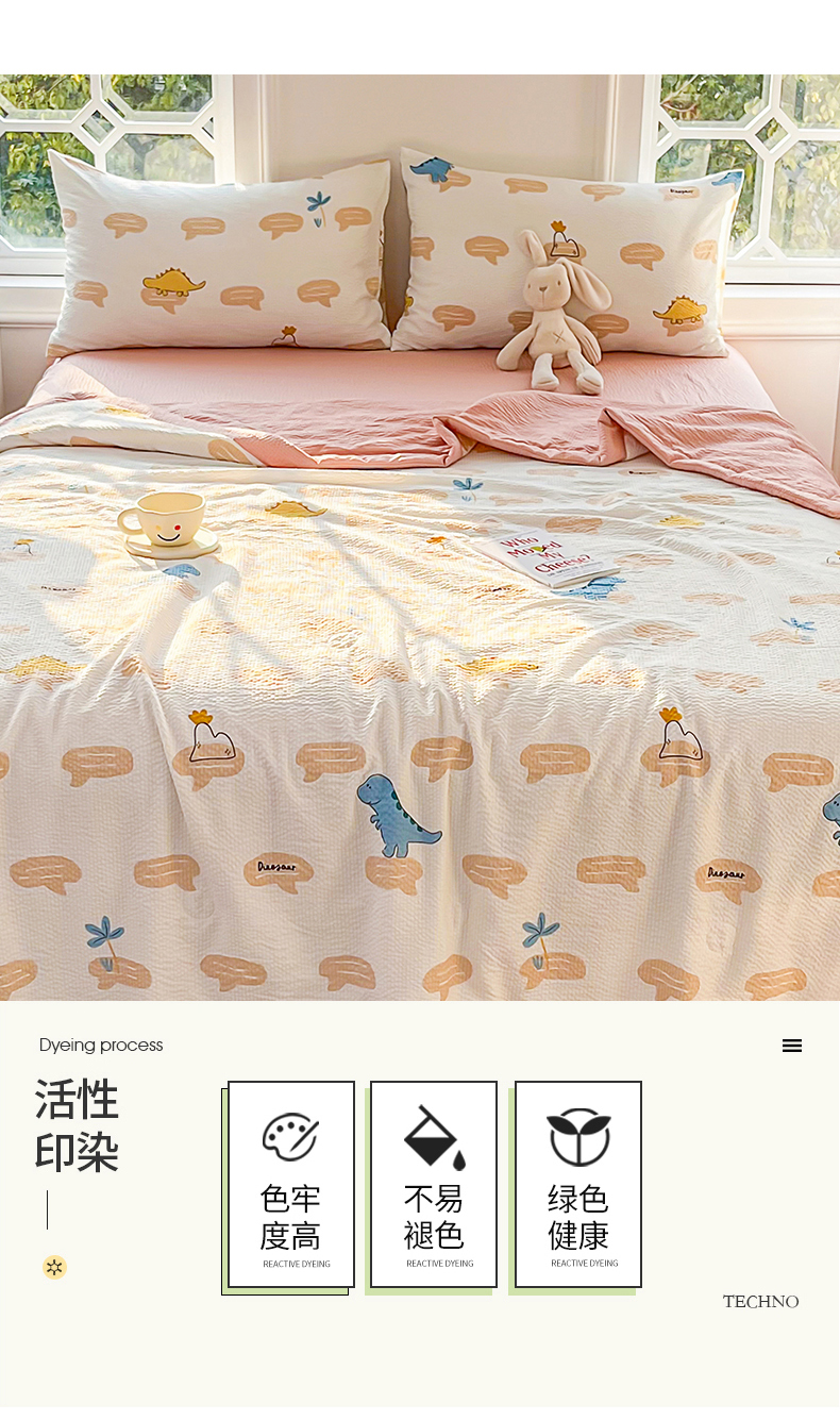 • 91家纺网 家纺一手货源 找家纺 默忆 2026新款A类泡泡棉夏被泡芙棉印花夏被四件套空调被夏凉被 恐龙世界