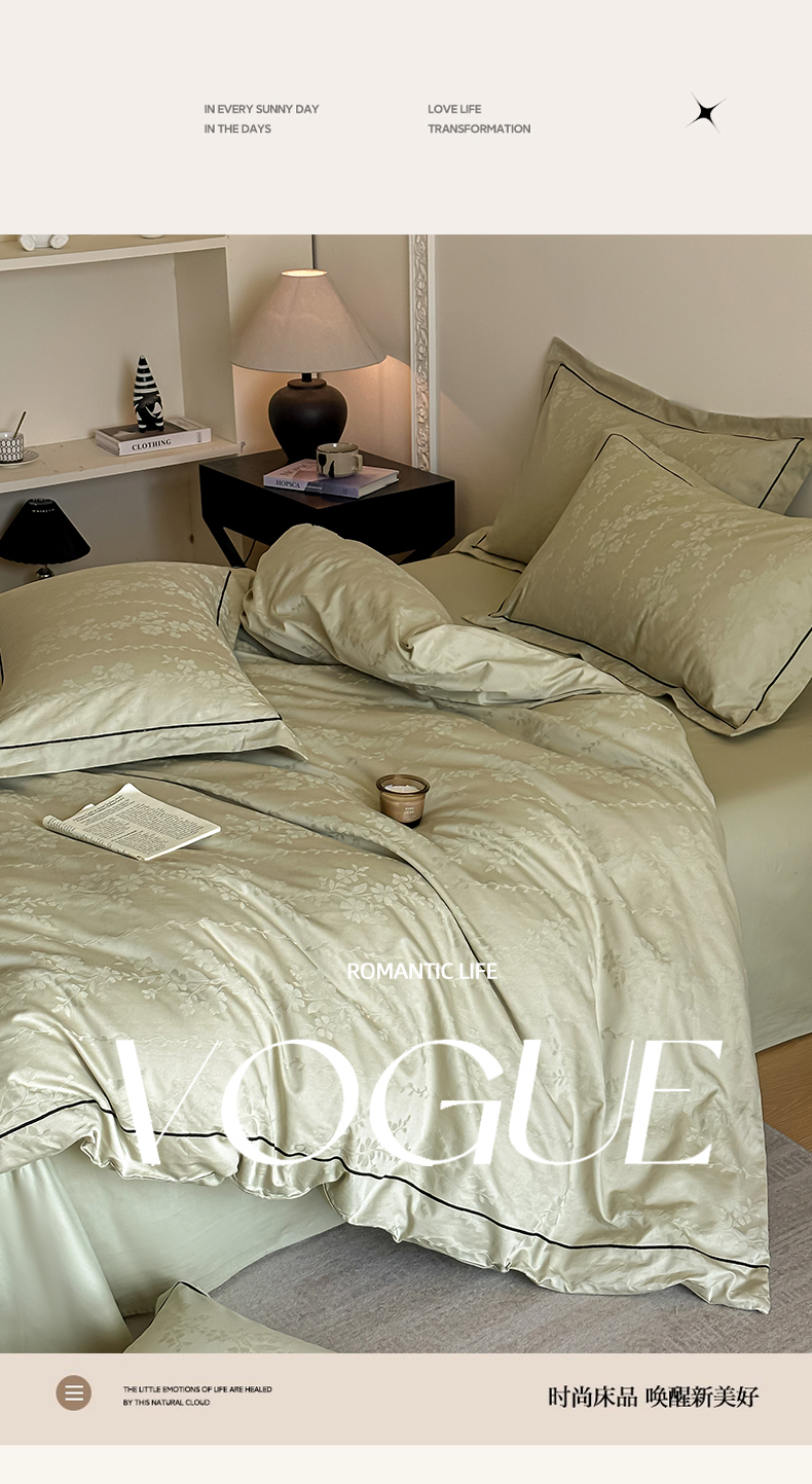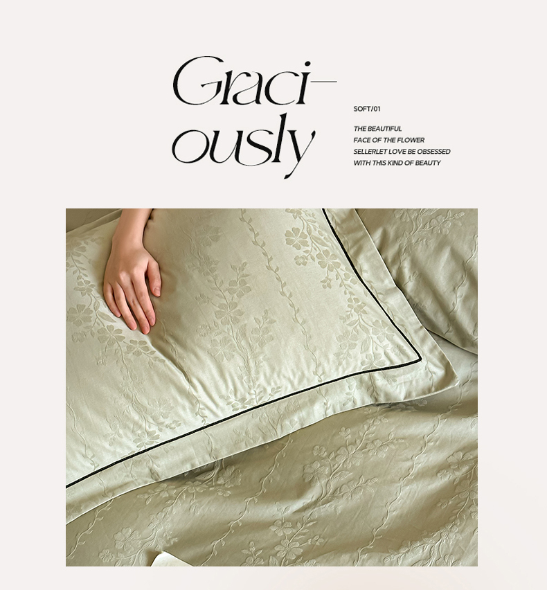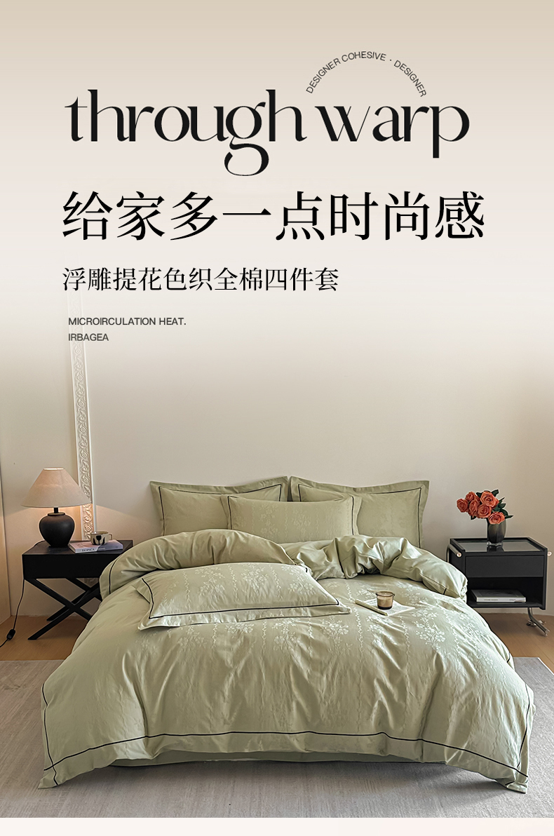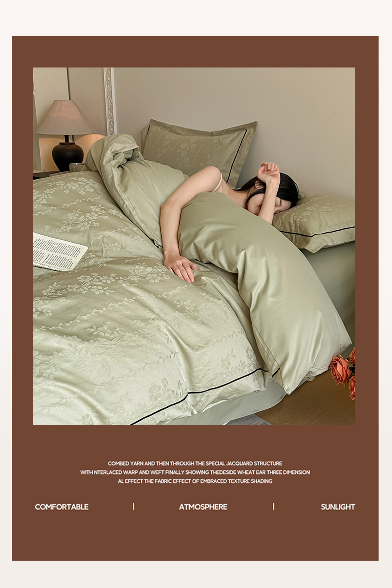 首尔家纺 2026新款浮雕提花色织全棉四件套 花蔓-绿