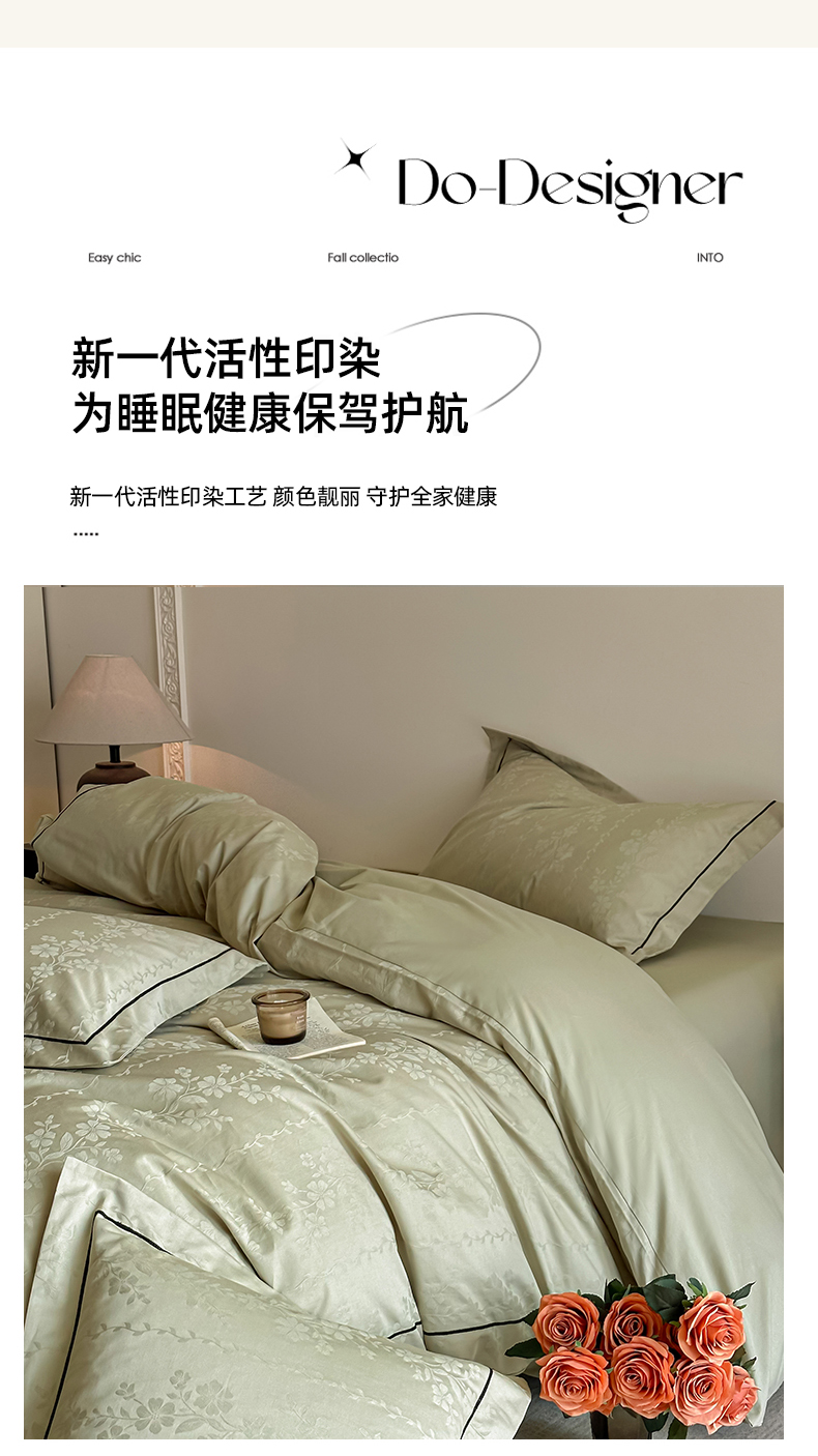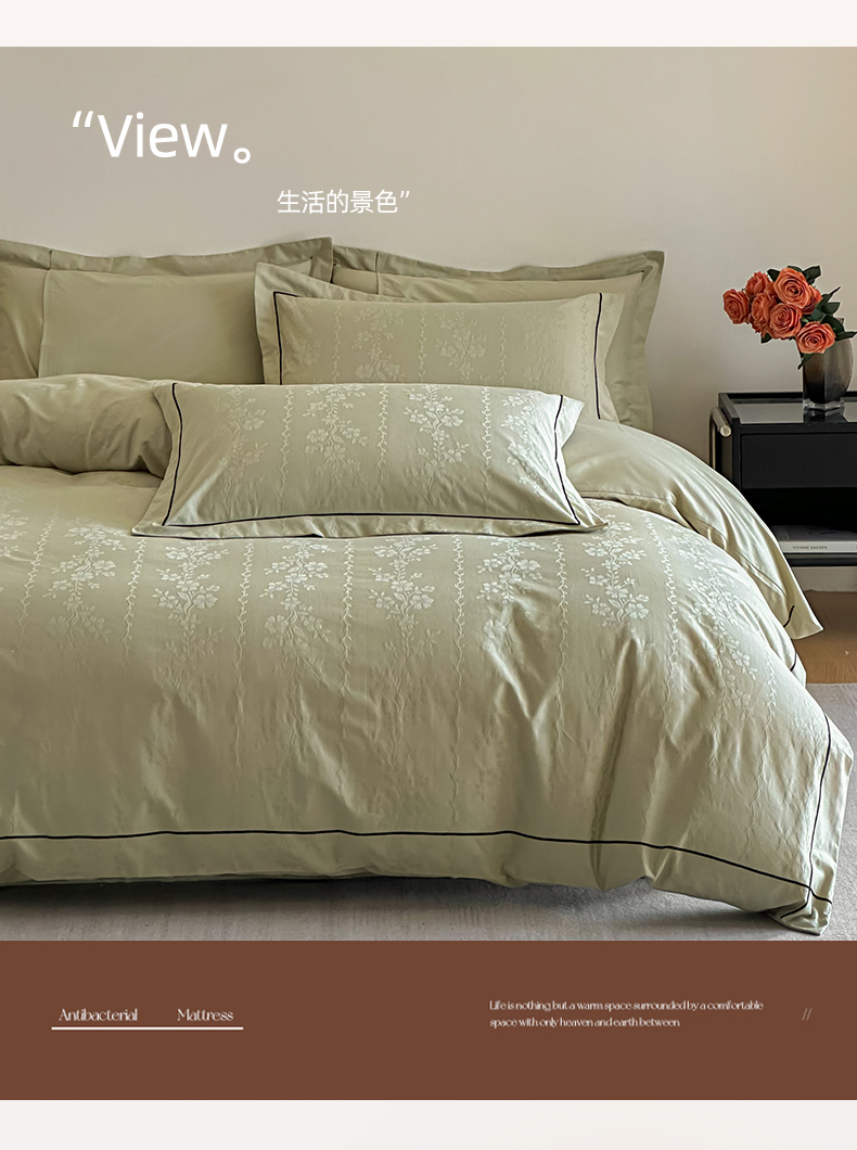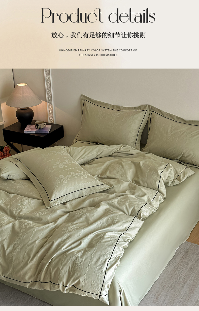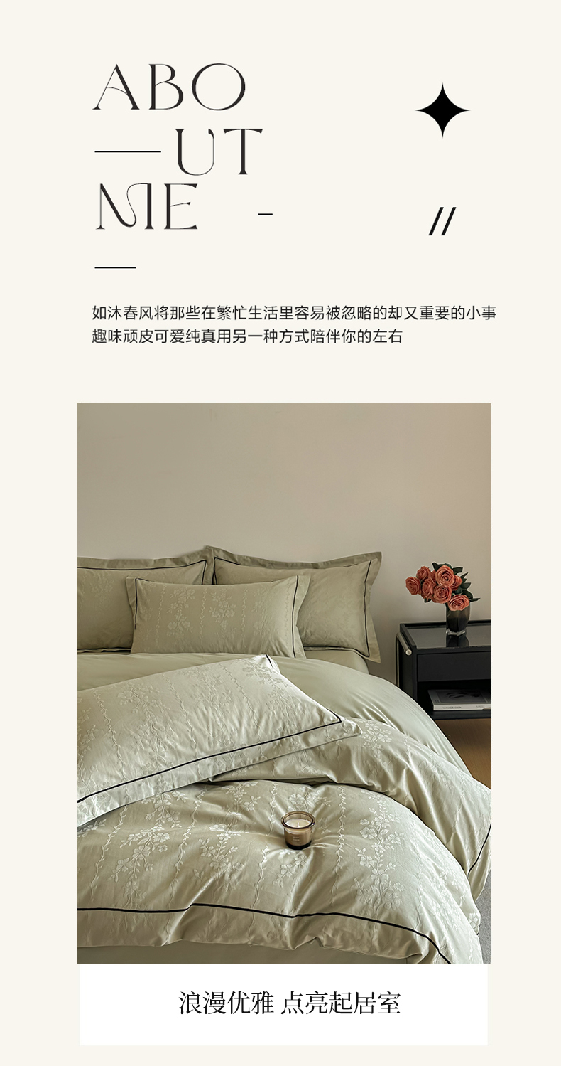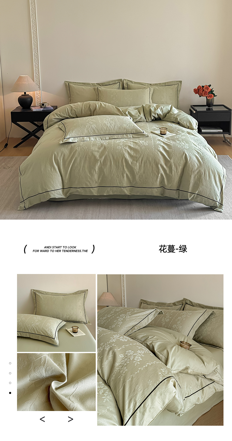 商品名称:首尔家纺 2026新款浮雕提花色织全棉四件套 花蔓-绿