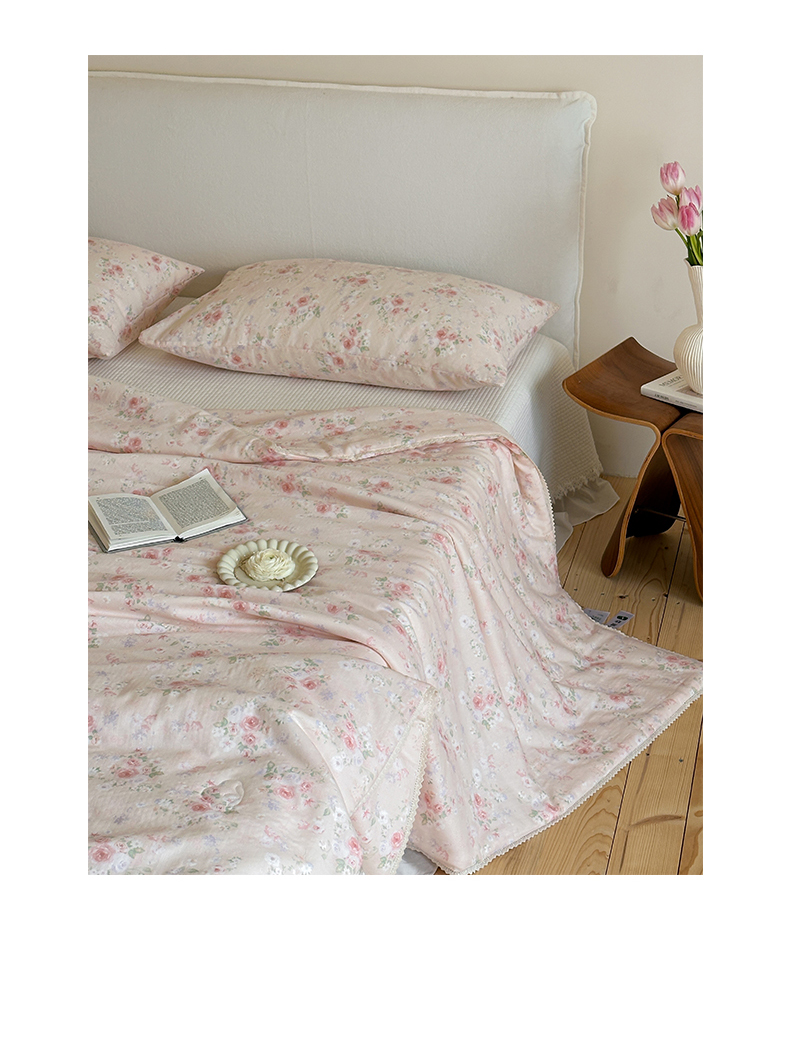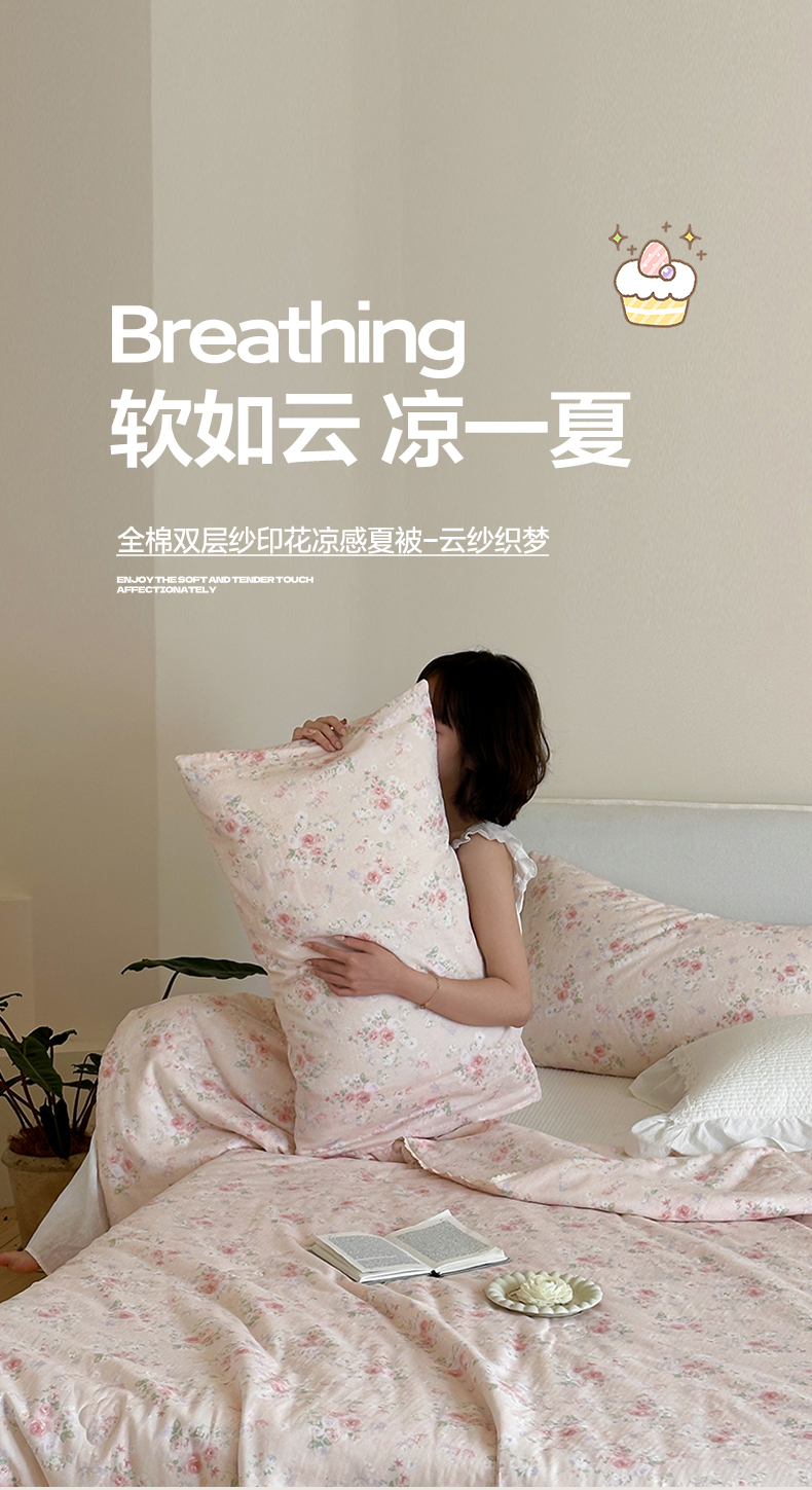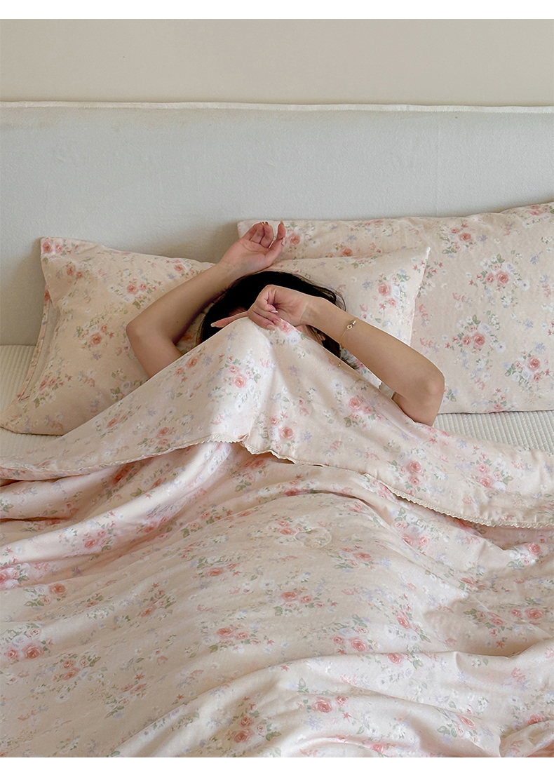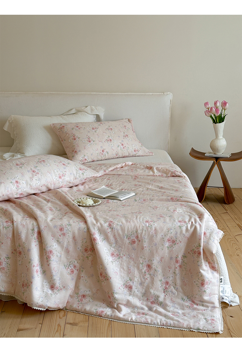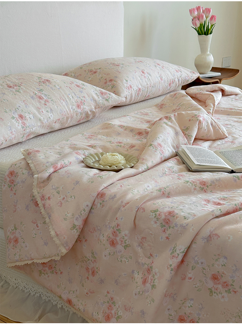 (总)一加一 2026新款复古碎花双层纱大豆夏被夏凉被空调被-纱边花眠,暗香,芬芳,花团锦簇,盛夏,叶影,绽放