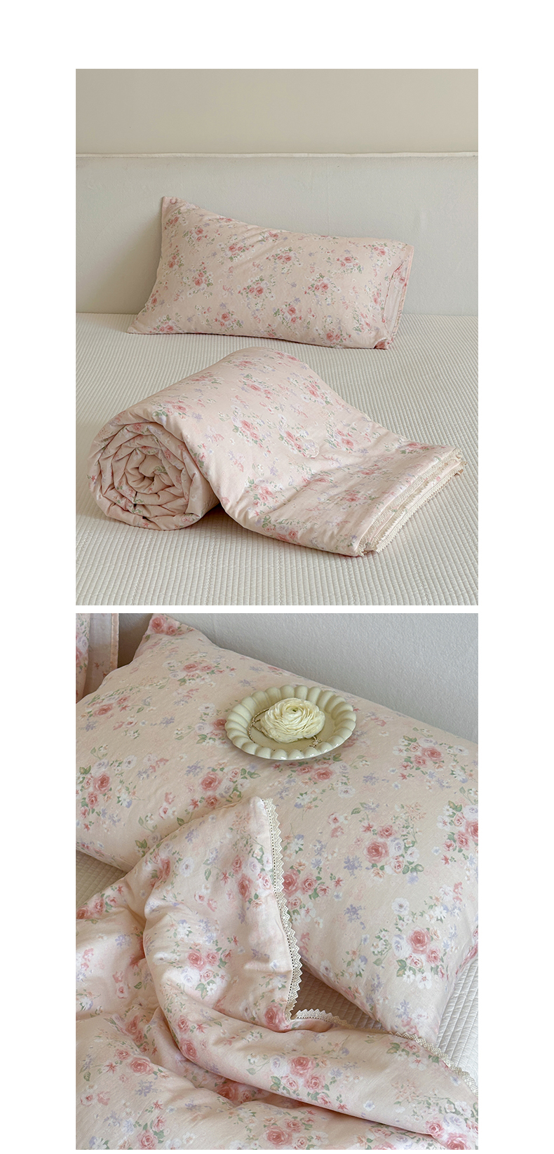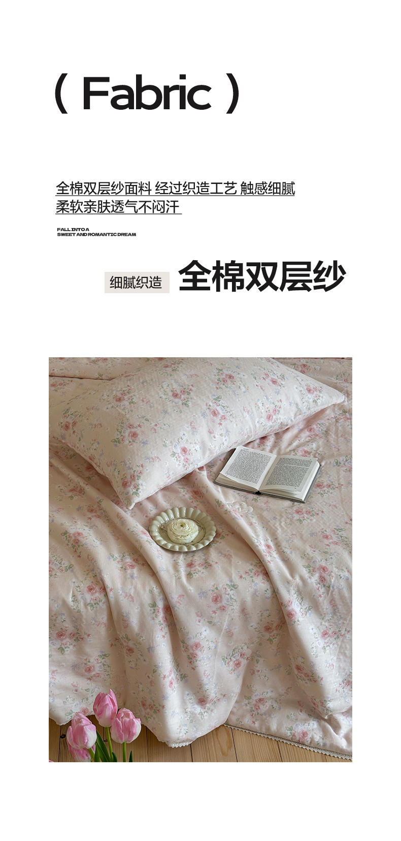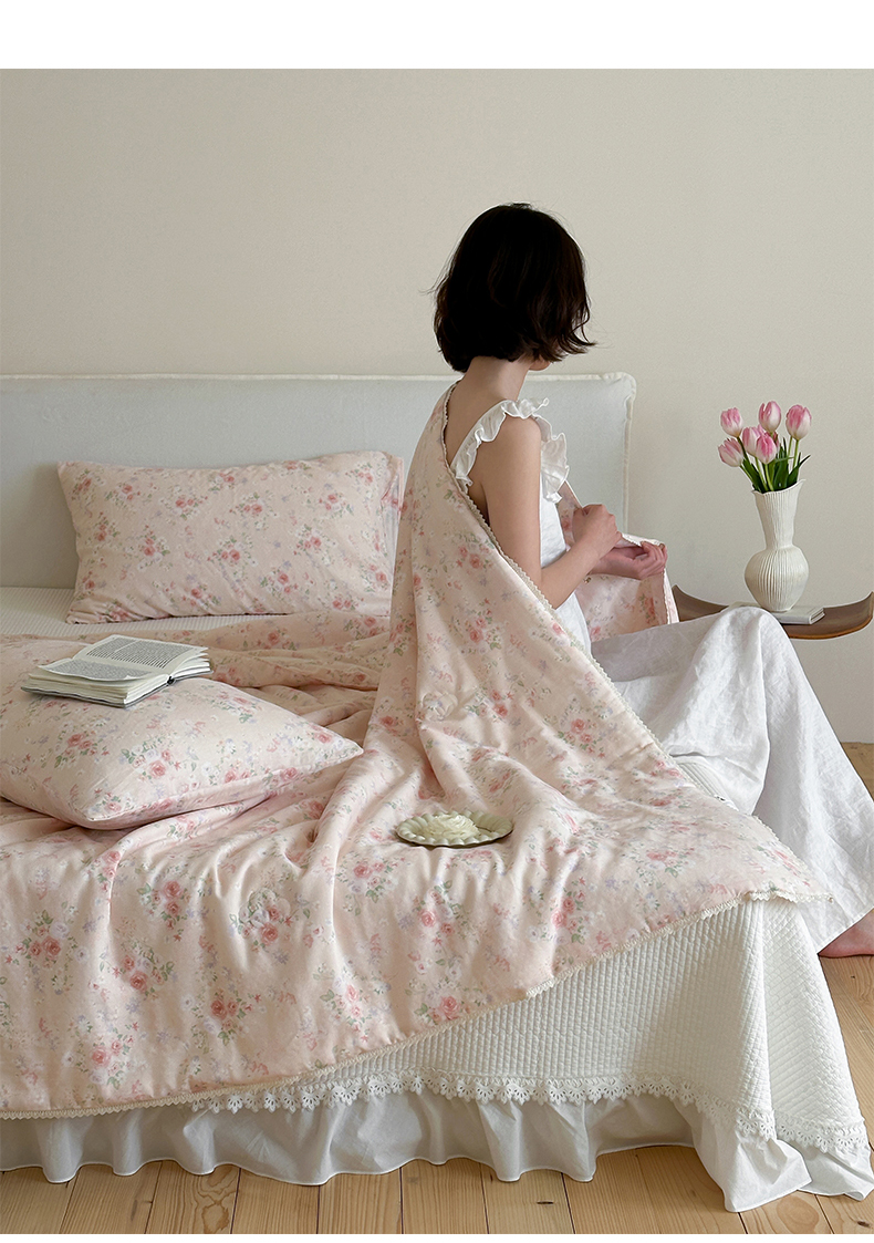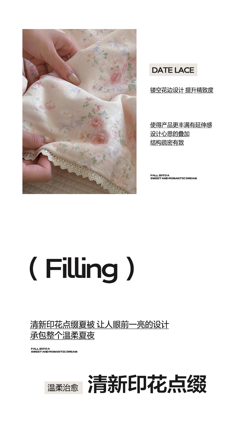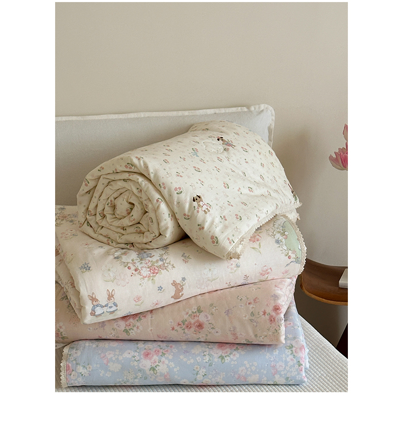 (总)一加一 2026新款复古碎花双层纱大豆夏被夏凉被空调被-纱边花眠,暗香,芬芳,花团锦簇,盛夏,叶影,绽放