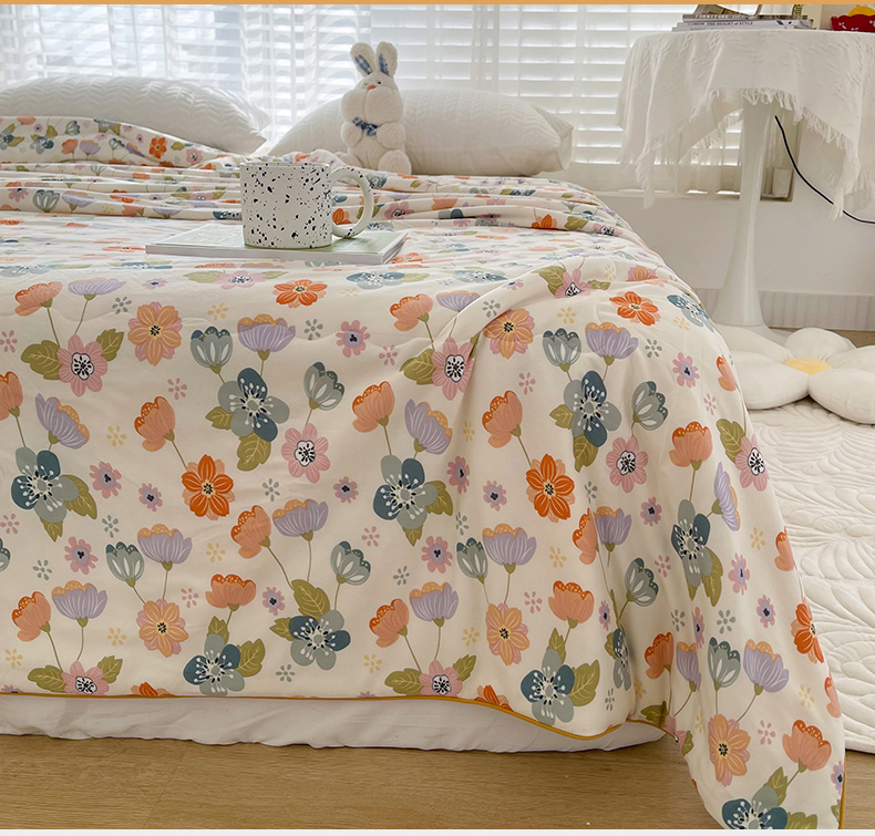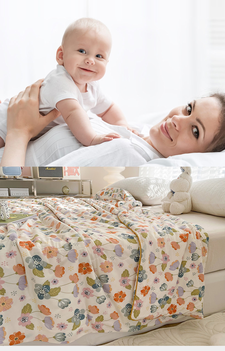 薇玛仕 2026新款A类牛奶丝针织棉印花大豆夏凉被空调被儿童被 花舞