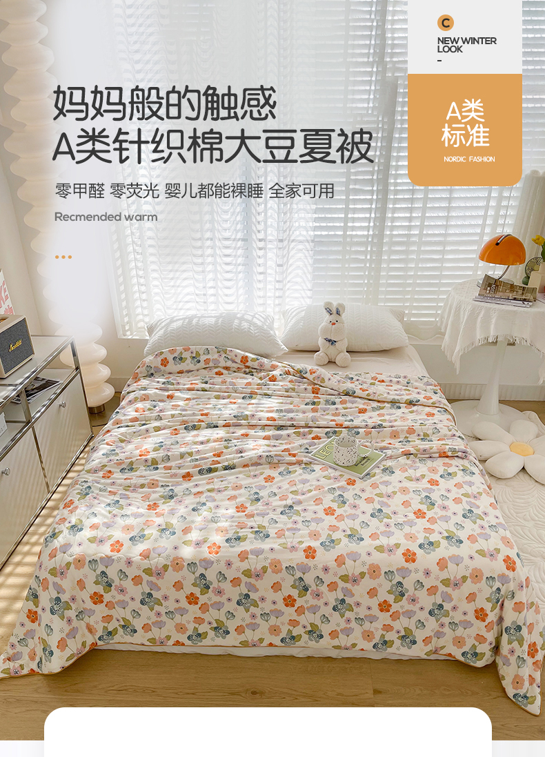 商品名称:薇玛仕 2026新款A类牛奶丝针织棉印花大豆夏凉被空调被儿童被 花舞