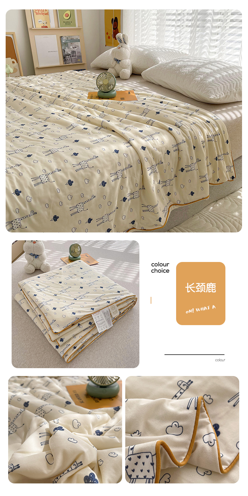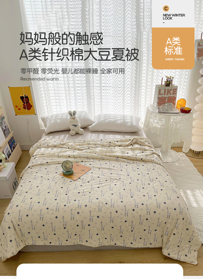 商品名称:薇玛仕 2026新款A类牛奶丝针织棉印花大豆夏凉被空调被儿童被 长颈鹿