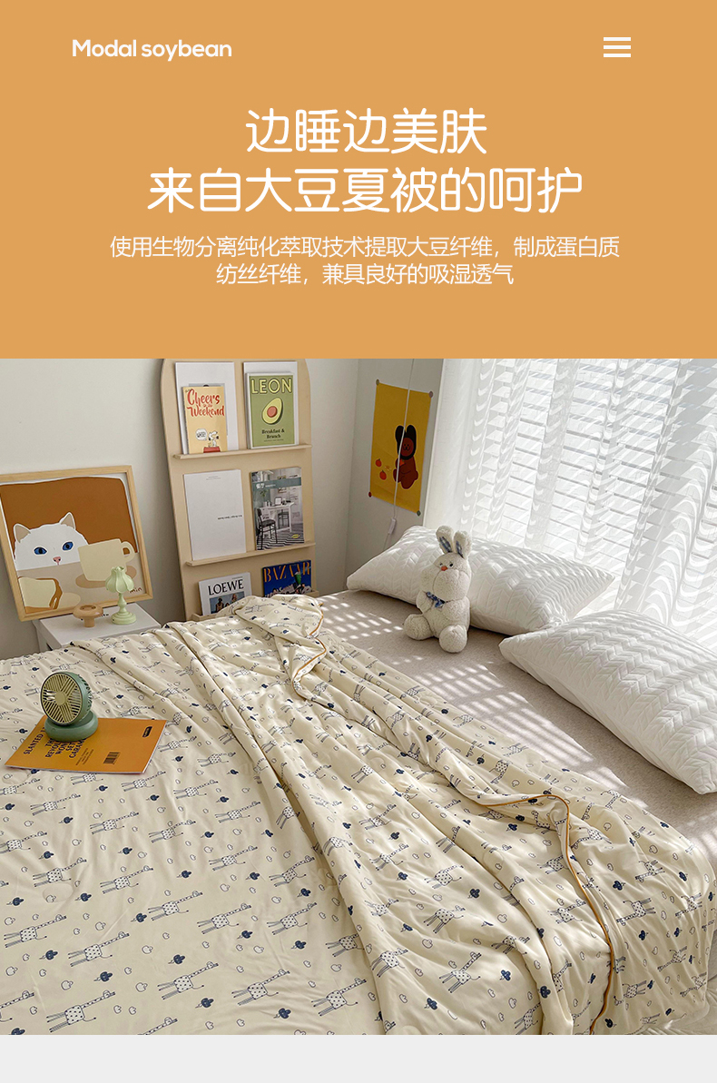 薇玛仕 2026新款A类牛奶丝针织棉印花大豆夏凉被空调被儿童被 长颈鹿