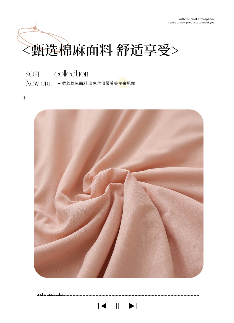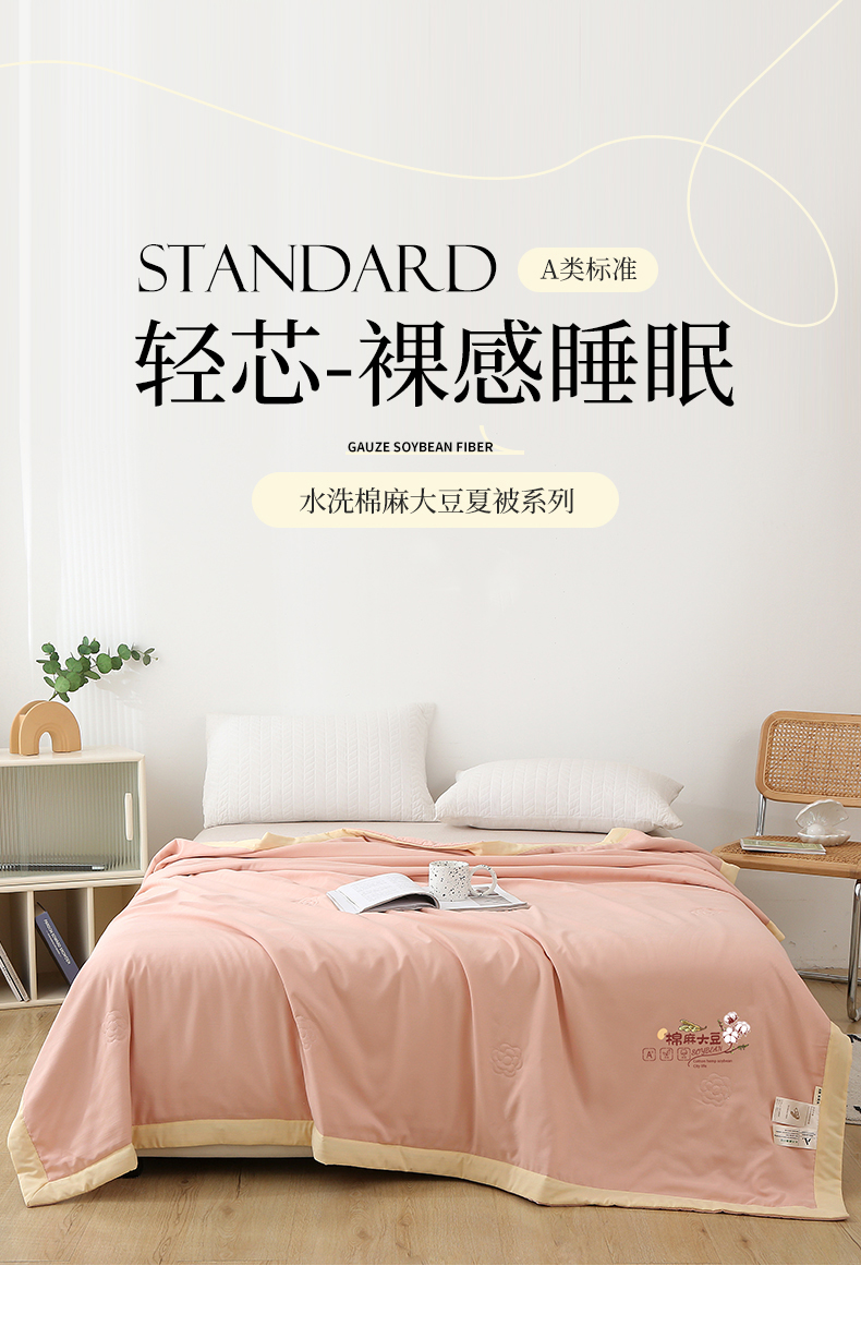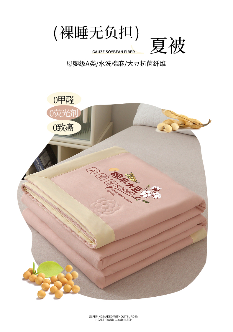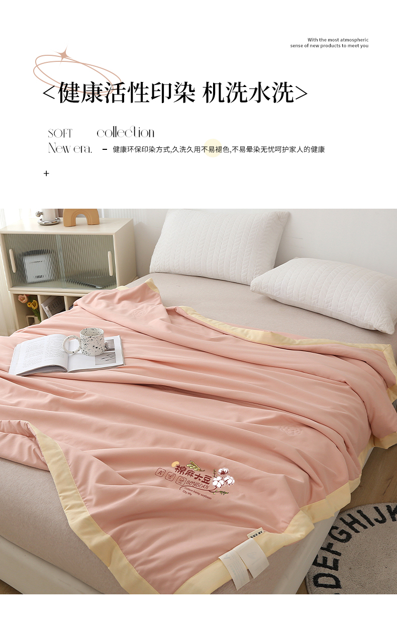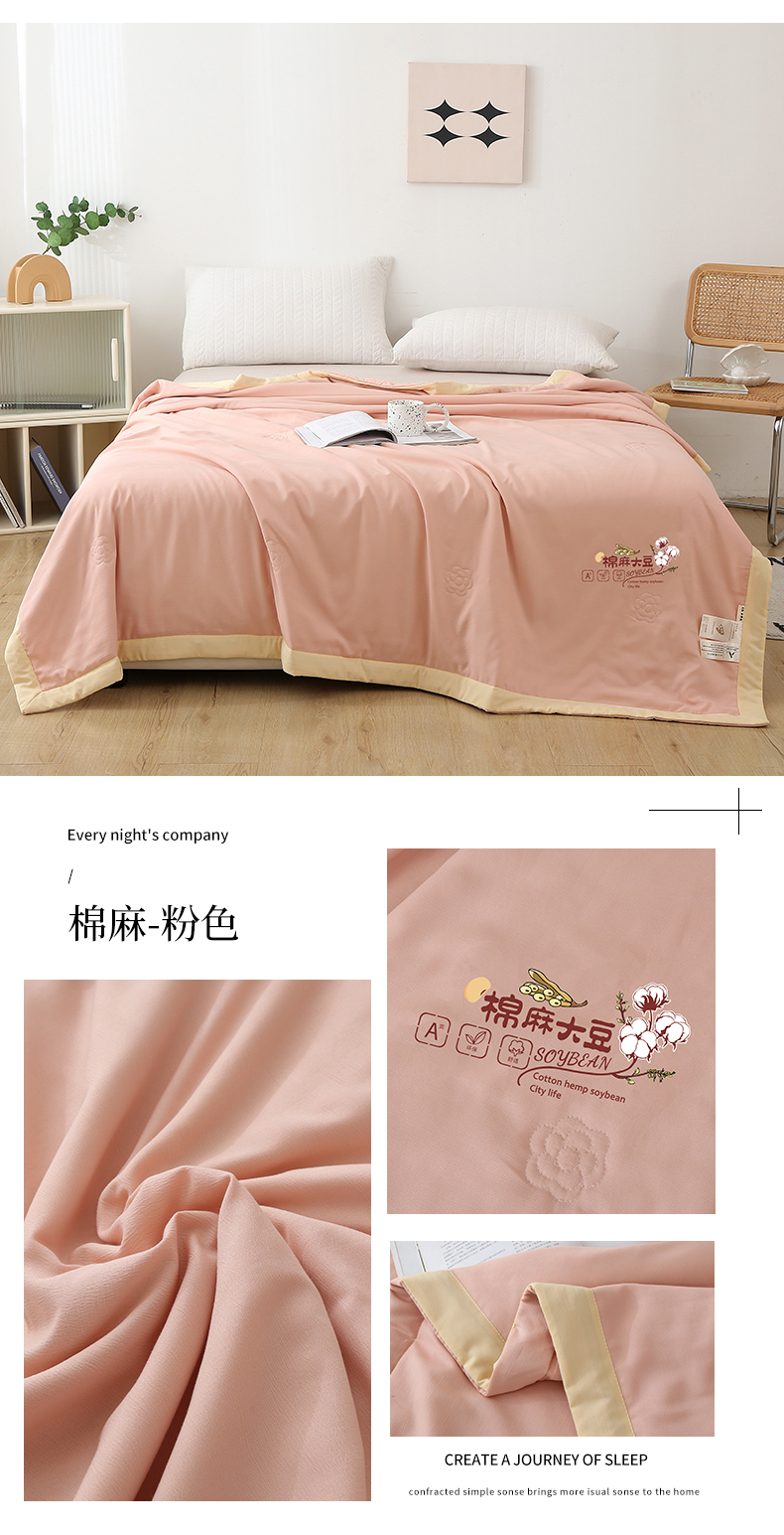 商品名称:薇玛仕 2026直播爆款水洗棉麻大豆夏凉被纯色手工包边空调被 棉麻-粉色