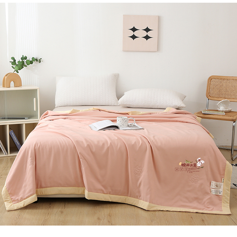 薇玛仕 2026直播爆款水洗棉麻大豆夏凉被纯色手工包边空调被 棉麻-粉色