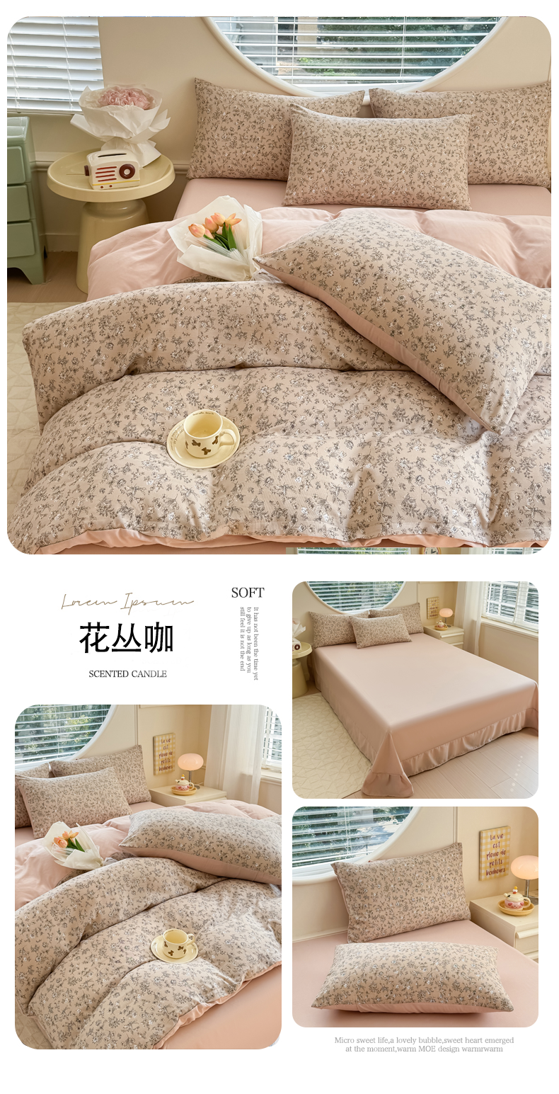 (总)爱多多家居 2026新款双层纱针织棉印花四件套,格子熊,爱心灰,初夏,花丛灰,花丛咖,欢乐颂,玫瑰花园,南瓜派,小豹纹,熊猫绿,郁金香