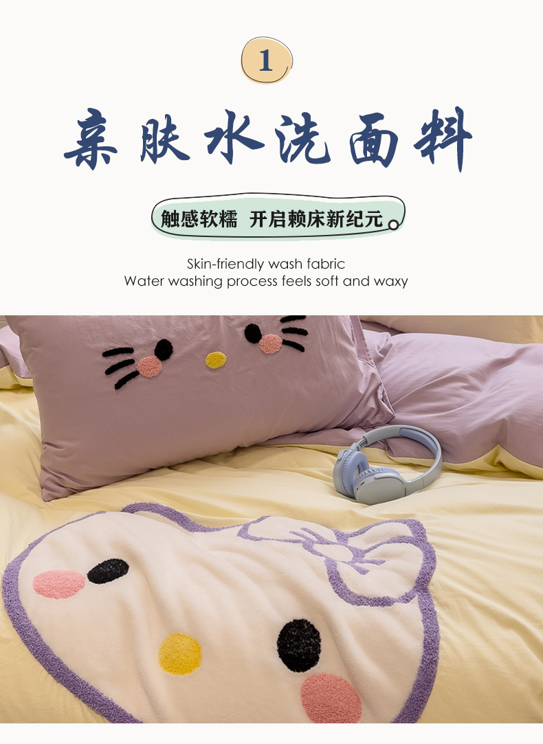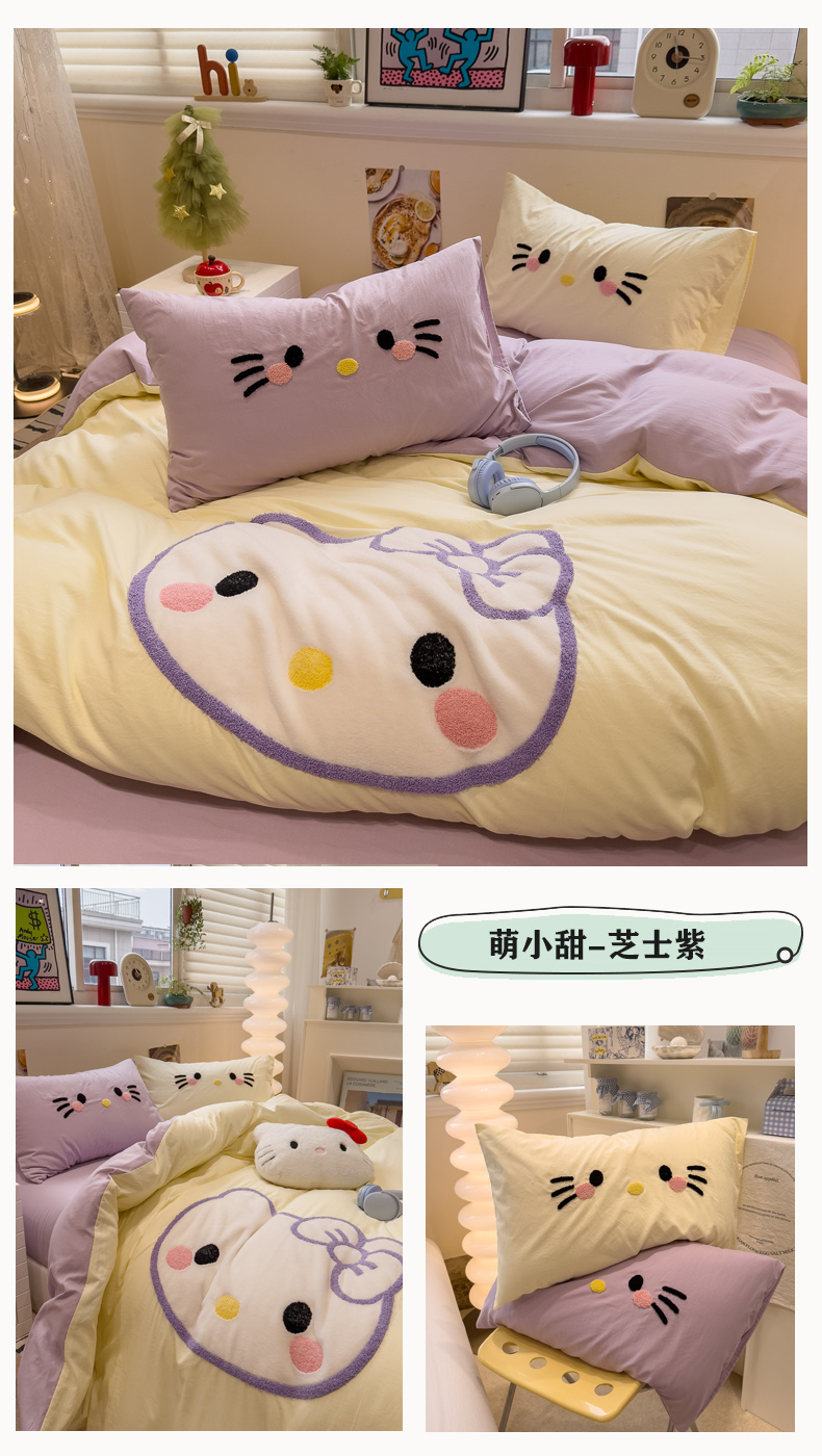 当前位置: 91家纺网 > 商品网购 > 床品套件 > 四件套 > 水洗棉四件套 > 曼谷家纺 2026年 水洗棉兔毛贴布绣萌小甜四件套被套床单学生双人 萌小甜-芝士紫