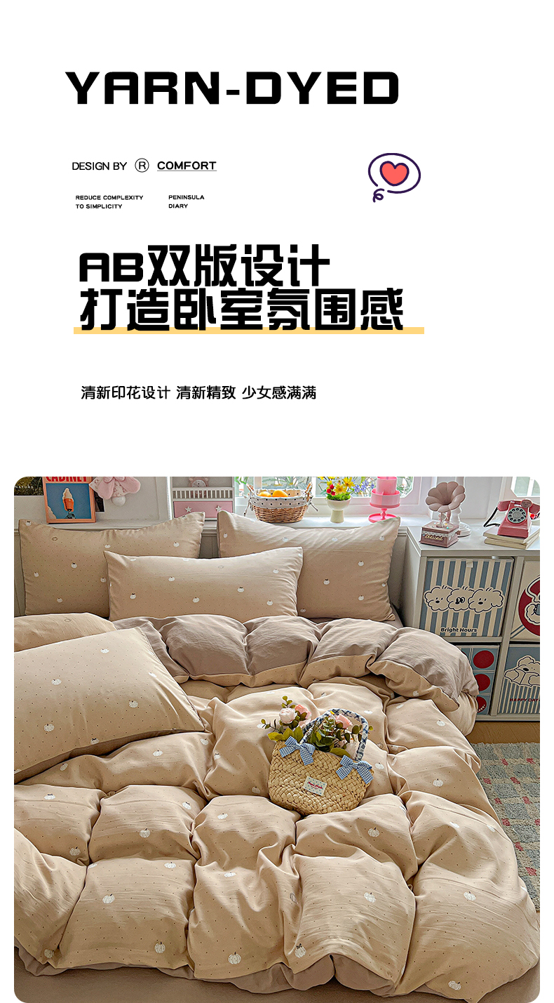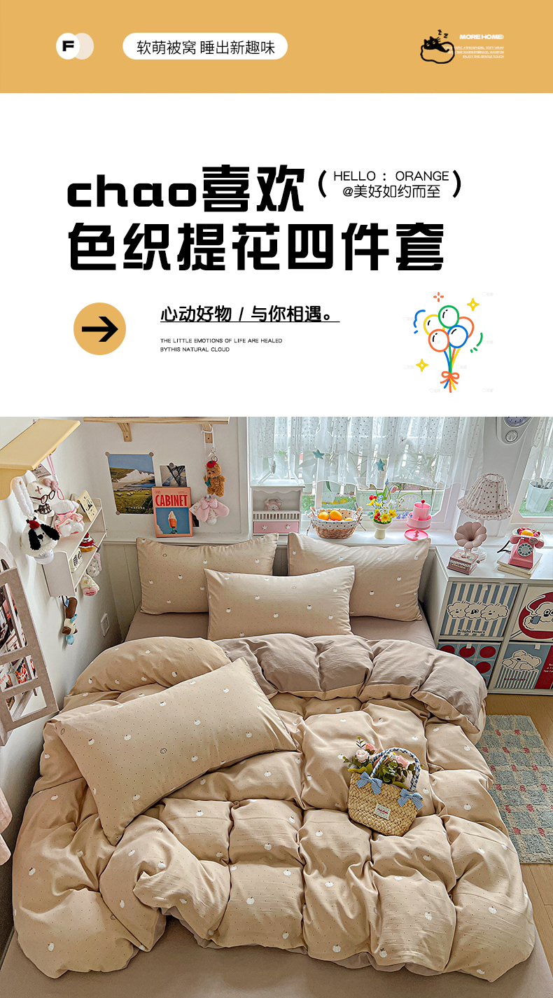 当前位置: 91家纺网 > 商品网购 > 床品套件 > 四件套 > 提花四件套 > 金梦拉家纺 2026春夏新款高克重提花色织印花小布袋四件套 小南瓜