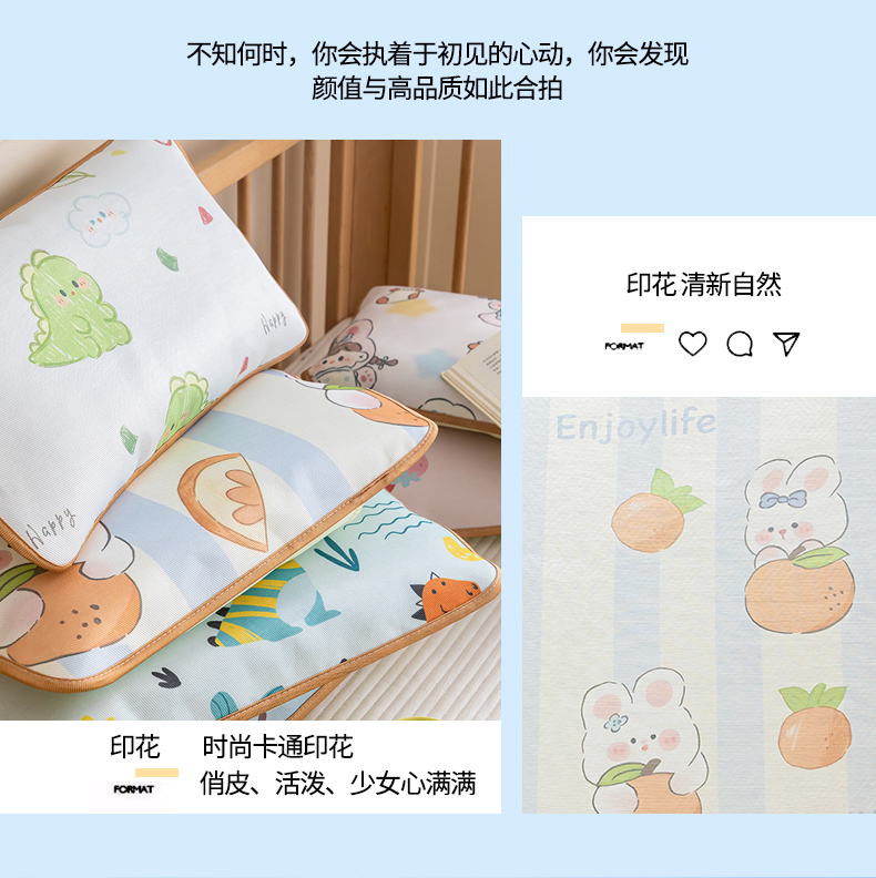 (总)嗨生活 2026新款600D冰丝凉席儿童婴儿床凉席幼儿园凉席拼床凉席席子,波点企鹅,粉红小兔,公主女孩,可爱美人鱼,可爱奶龙,恐龙世界,快乐男孩,西瓜女孩,宇宙超人