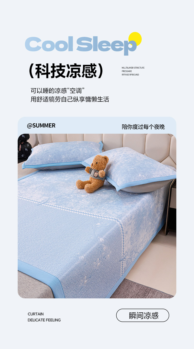 (总)梵克保罗 2026春夏新款A类3D凉感冰豆豆席刺绣席子凉席三件套-平铺款花枝招展