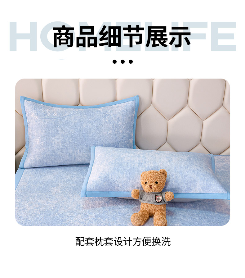 商品名称:(总)梵克保罗 2026春夏新款A类3D凉感冰豆豆席刺绣席子凉席三件套-平铺款花枝招展