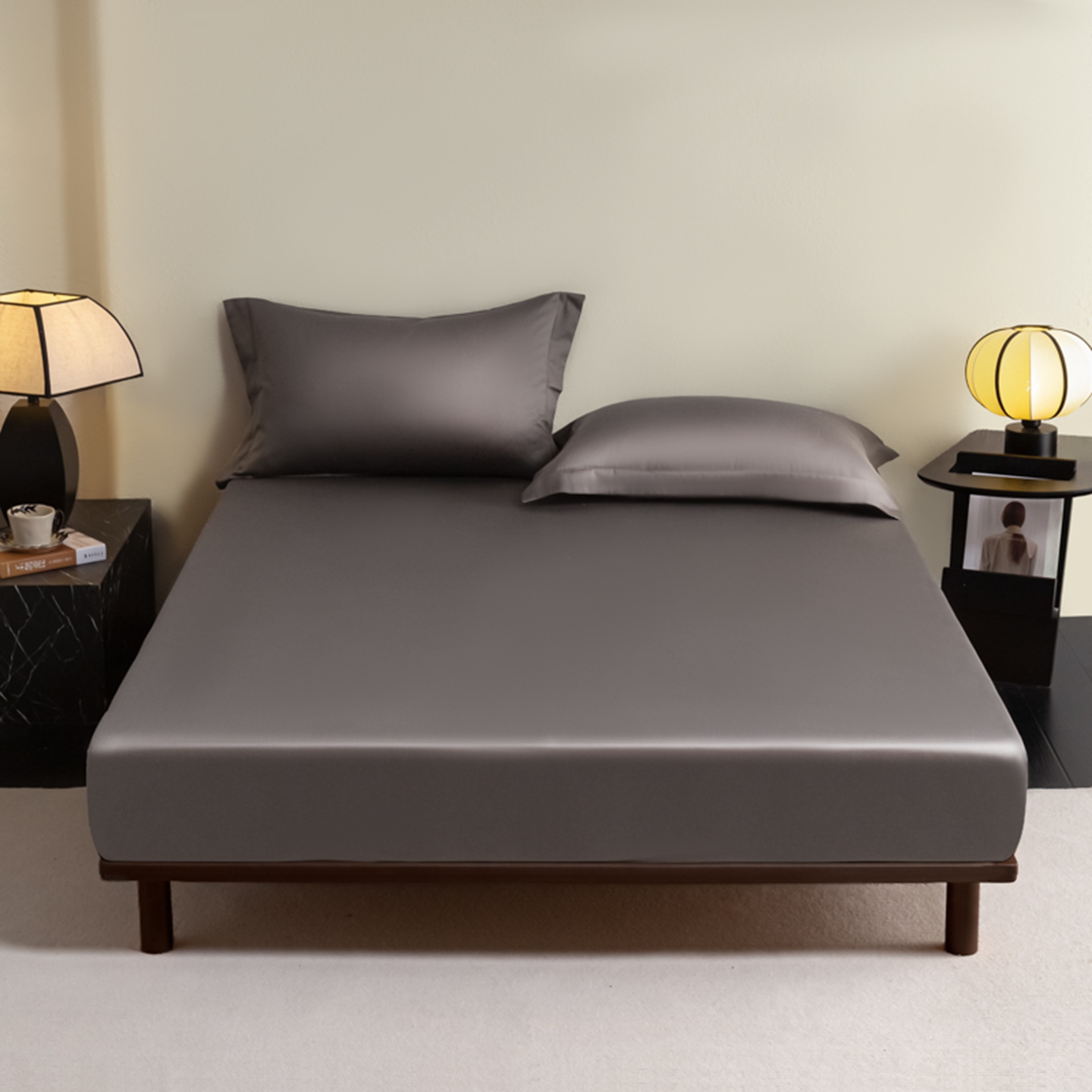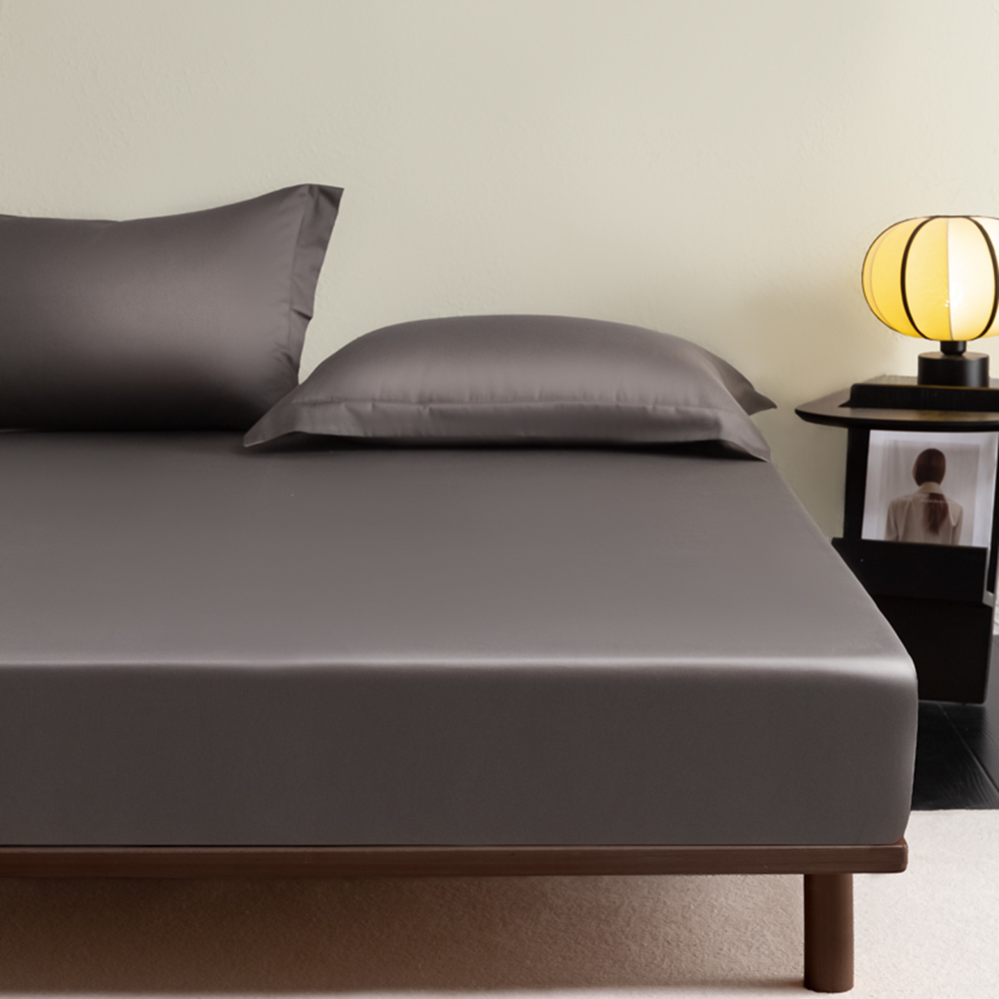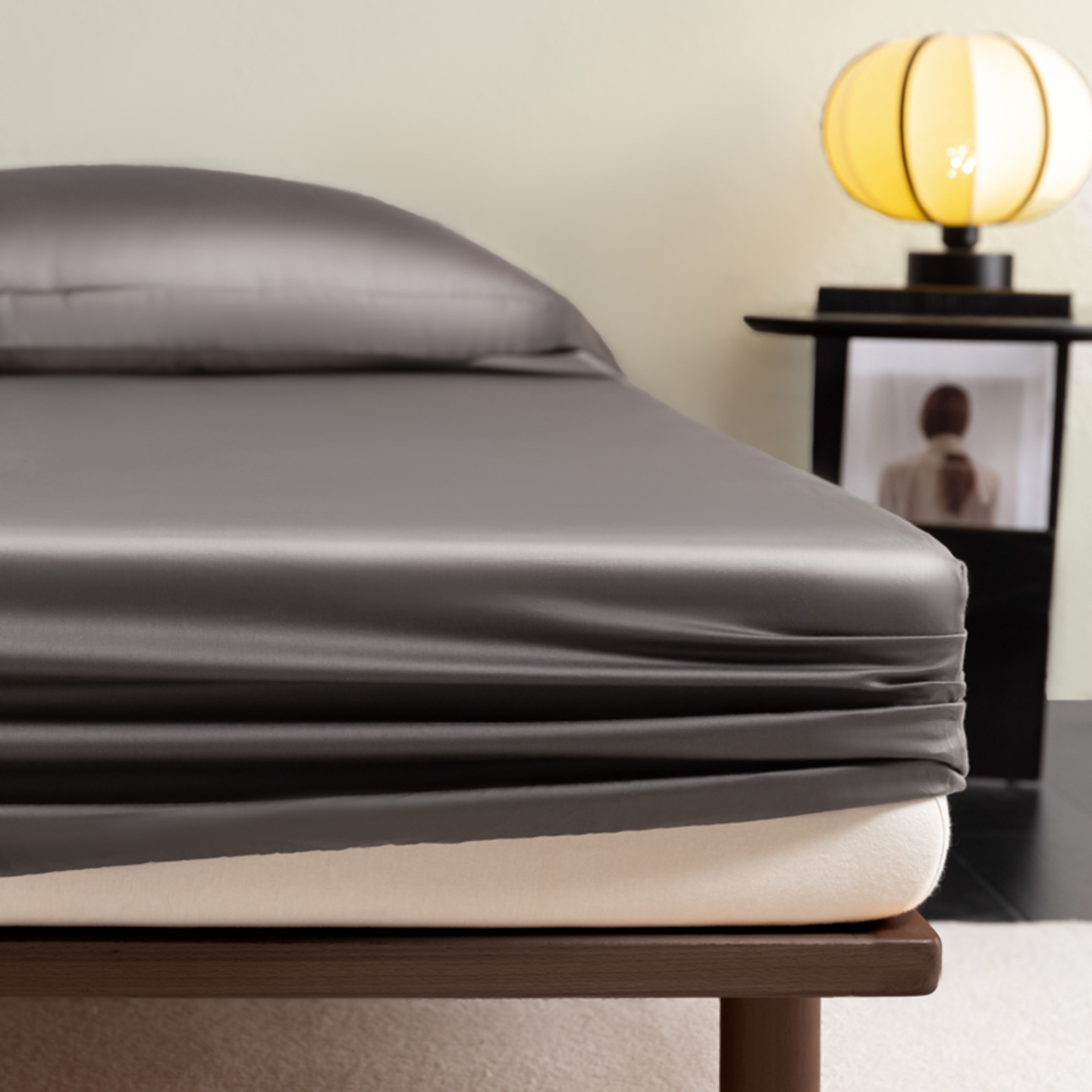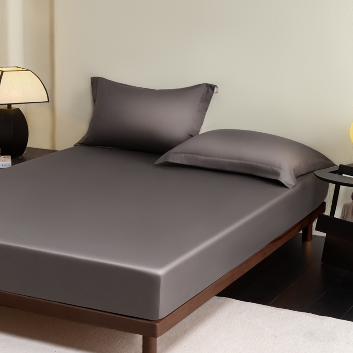 商品名称:秀色家纺 2026新款高端Pro+全棉纯棉床笠三件套纯棉床垫保护套简约纯色床套防尘罩单件 梦易-帝王灰