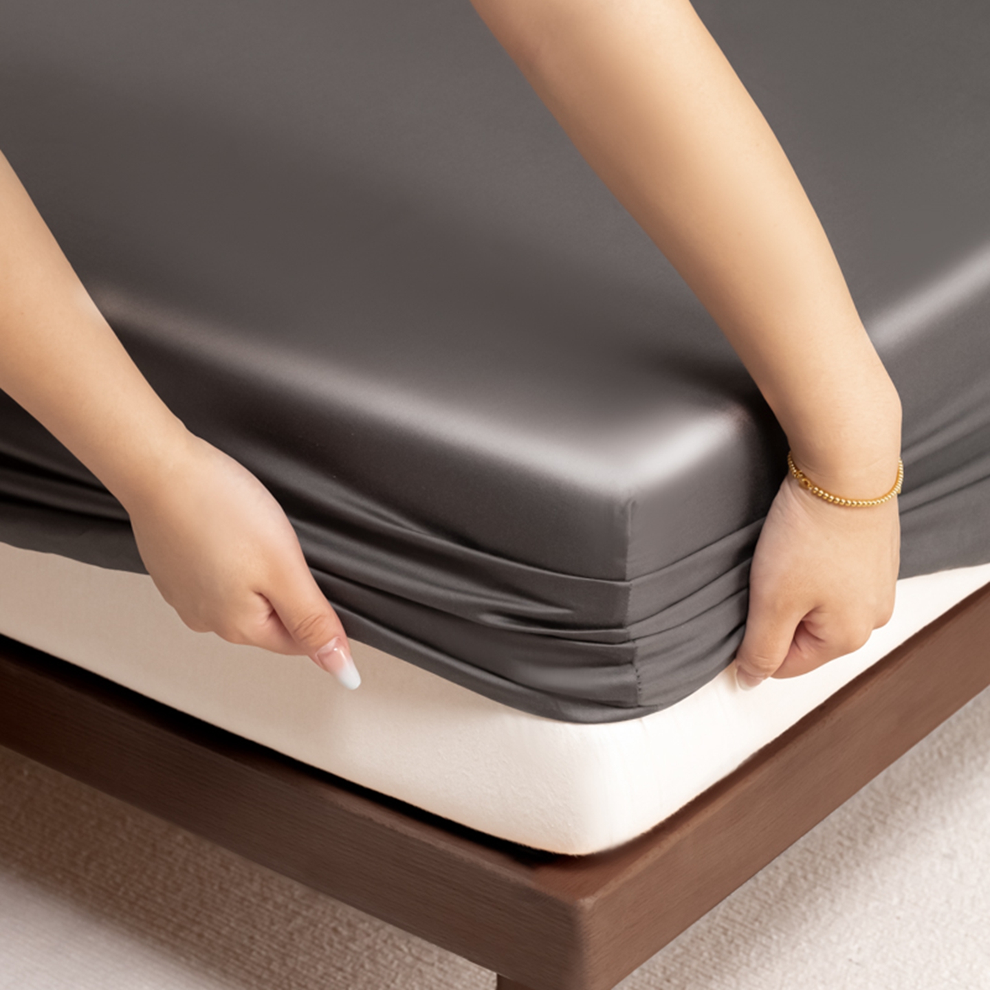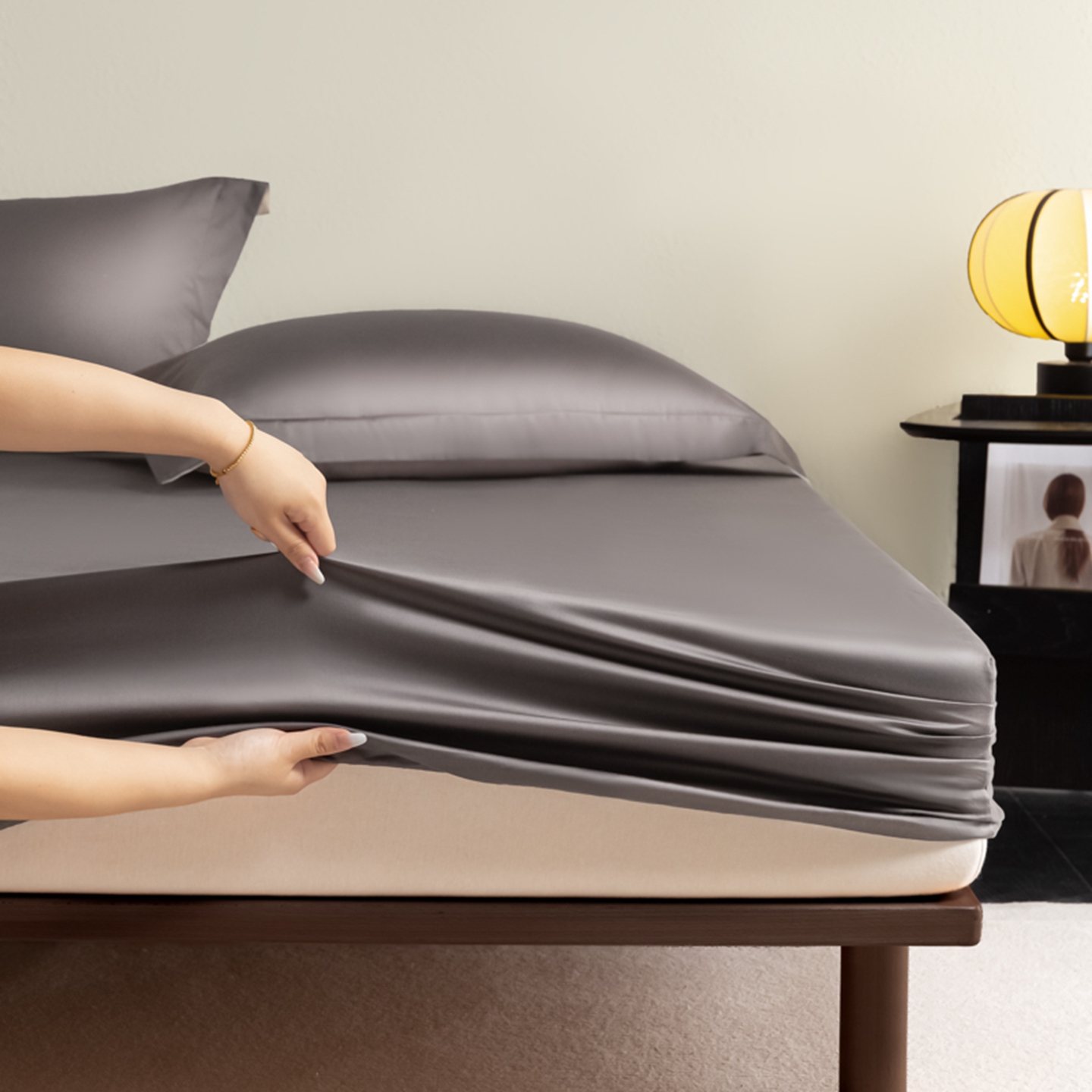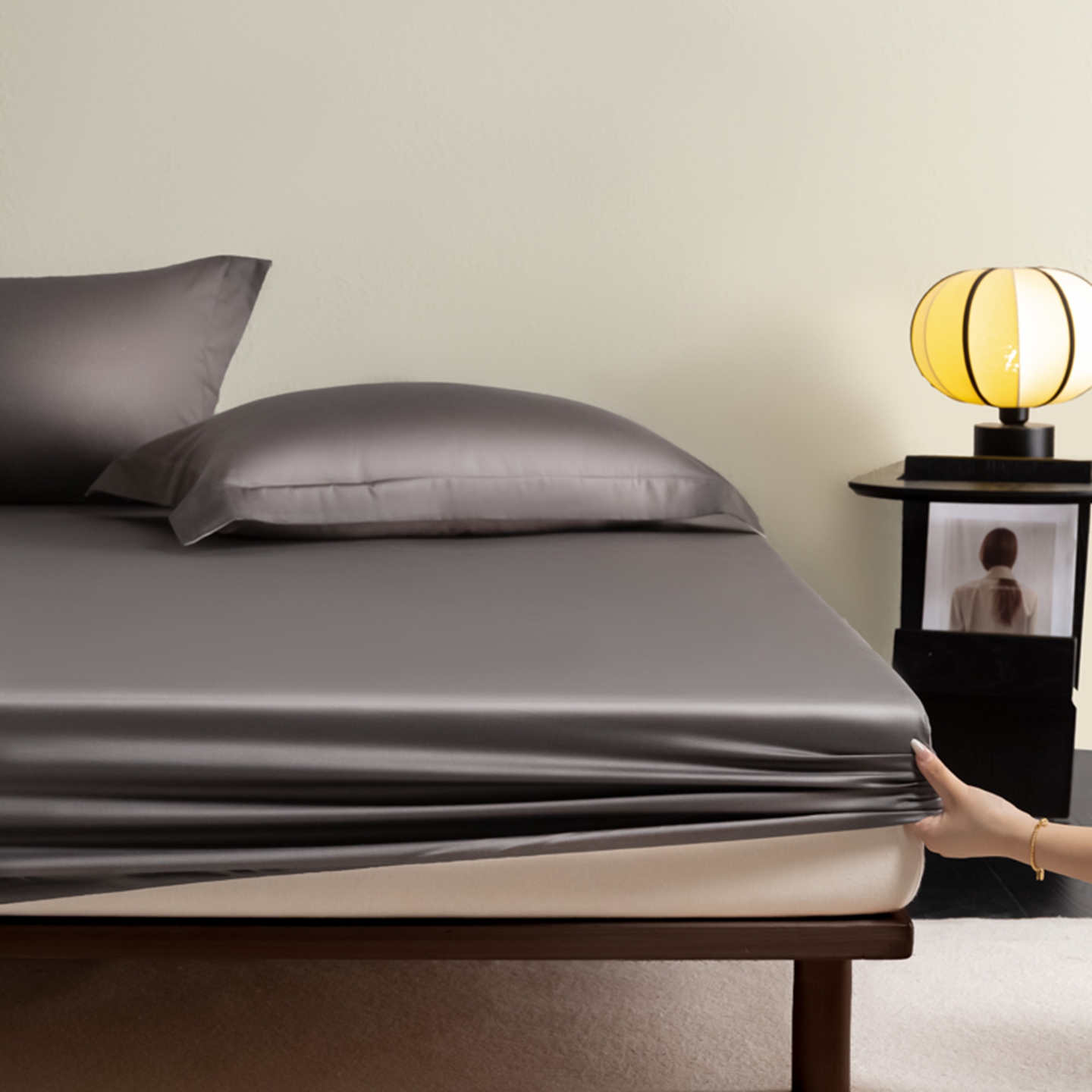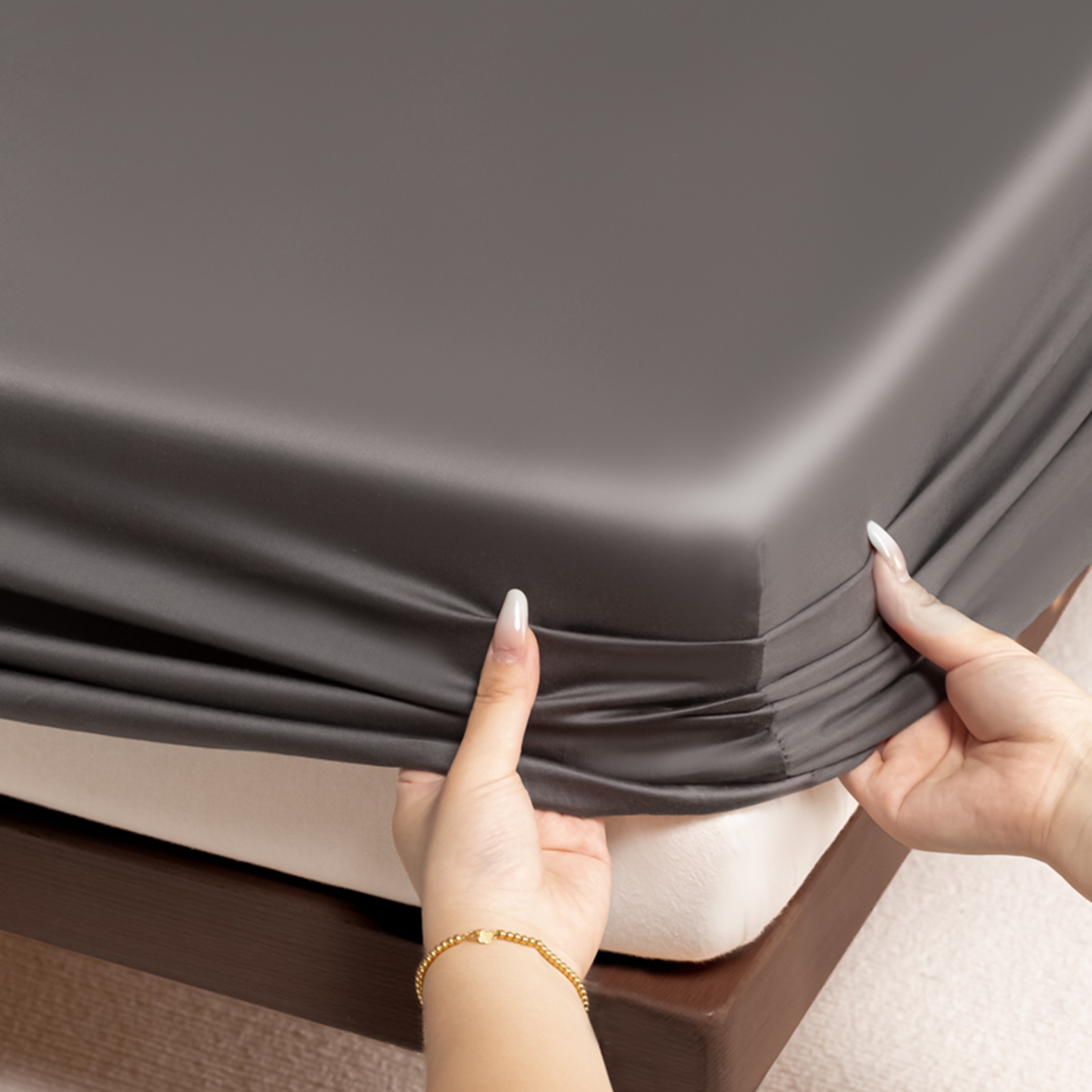 商品名称:秀色家纺 2026新款高端Pro+全棉纯棉床笠三件套纯棉床垫保护套简约纯色床套防尘罩单件 梦易-帝王灰