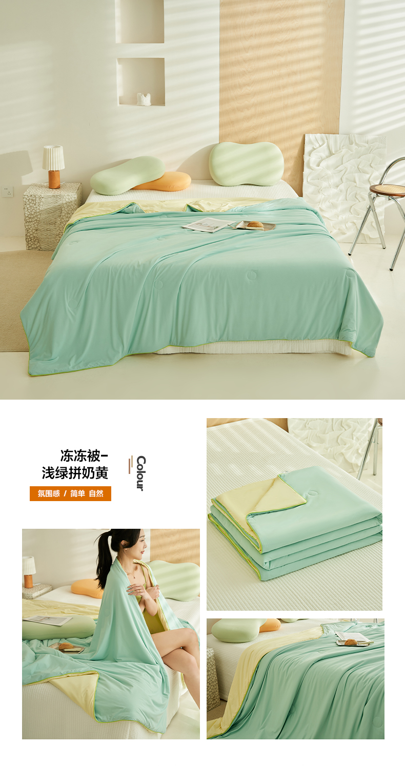(总)晨曦家纺 2026新款A类凉感丝清凉大豆夏被四件套-熊猫冻冻被,冻冻被-深蓝拼苹果绿,冻冻被-奶油粉灰,冻冻被-苹果绿拼悠粉,冻冻被-浅绿拼奶黄,冻冻被-天蓝拼奶黄,冻冻被-天青色拼天蓝,冻冻被-微醺奶油黄粉,冻冻被-雾蓝灰