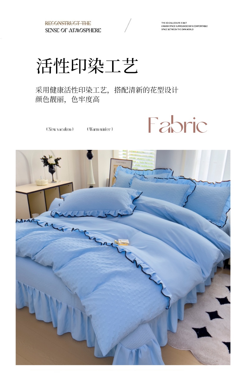 (总)畅畅家纺 2026新款春夏高档轻奢韩版提花花边床盖四件套水洗真丝冰丝套件,花边-粉色,花边-米白色,花边-蓝色,花边-浅玉
