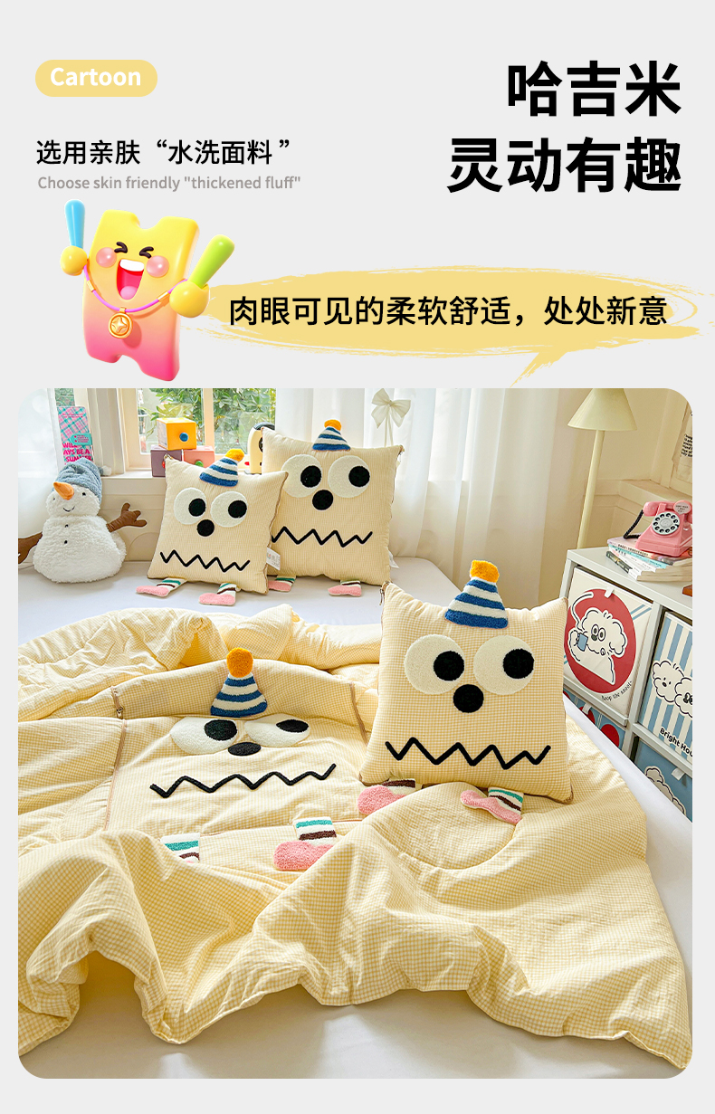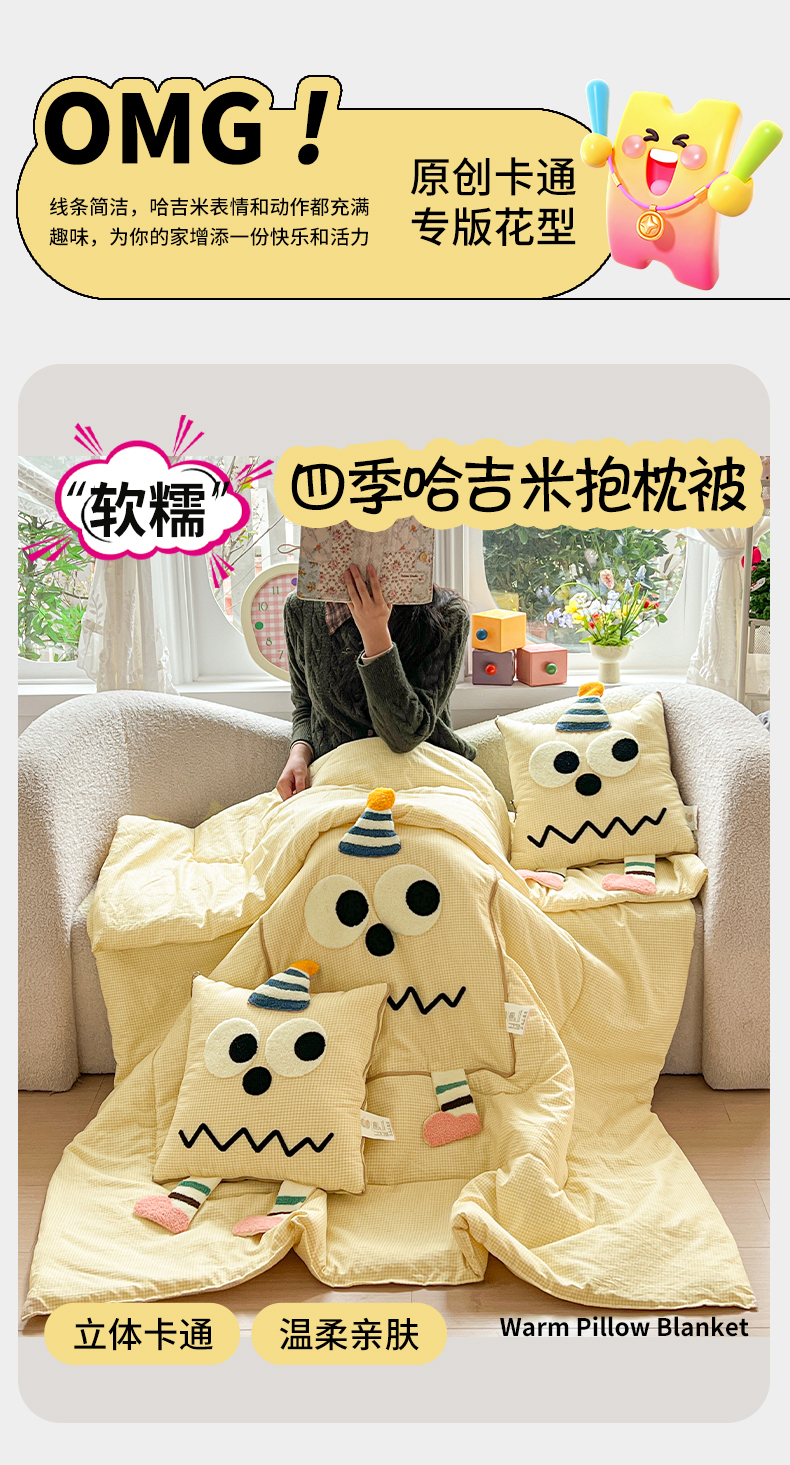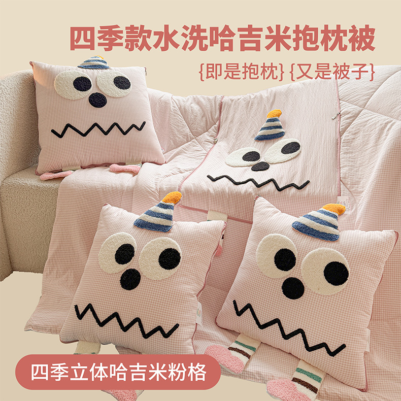 商品名称:古本家居 2026新款四季款水洗哈吉米抱枕被 四季立体哈吉米黄格