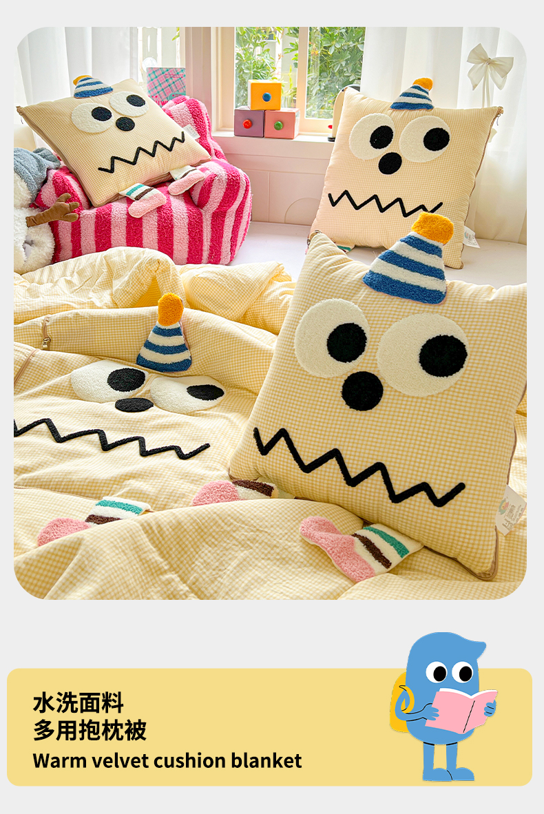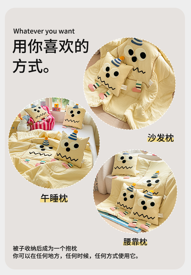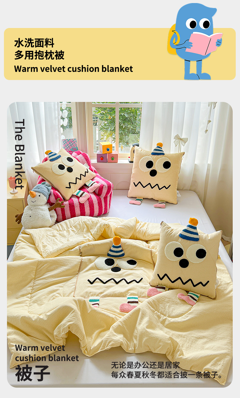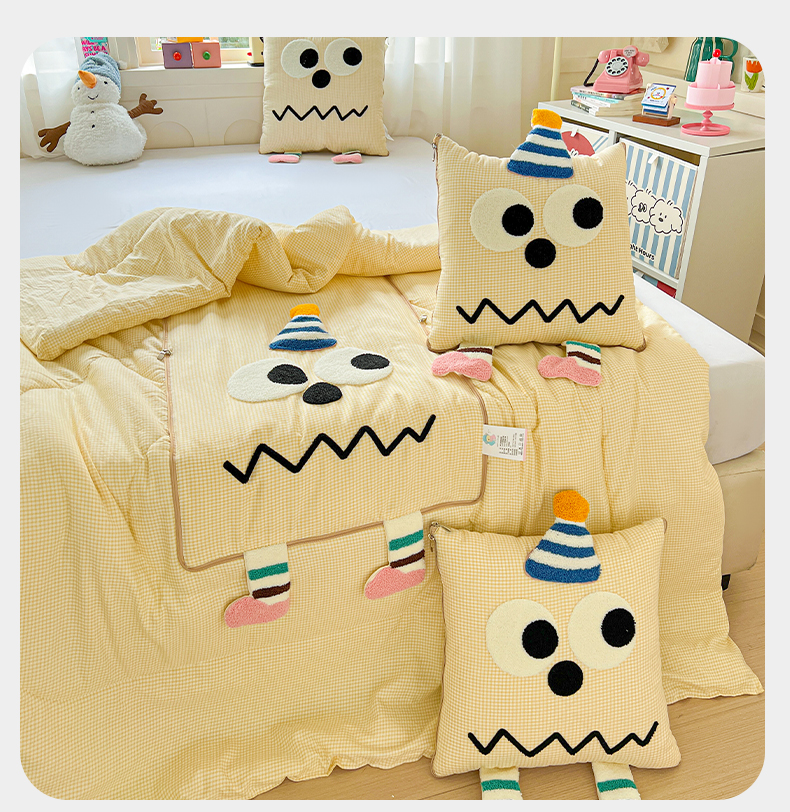 (总)古本家居 2026新款四季款水洗小星人抱枕被,四季小星人绿格,四季小星人粉格,四季小星人黄格,四季小星人蓝格