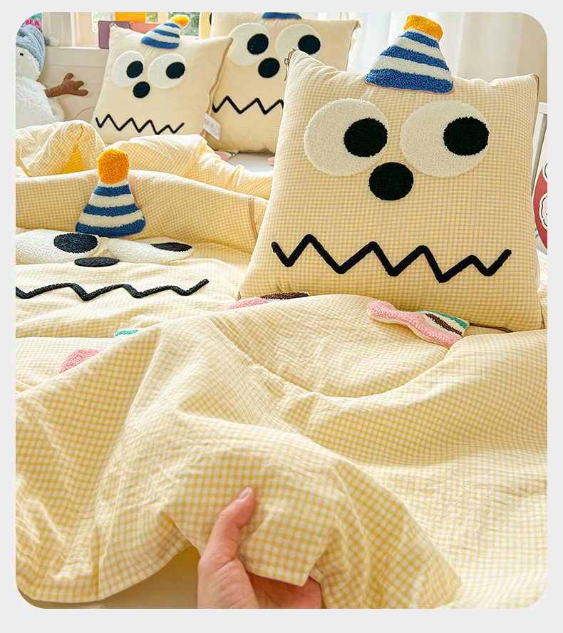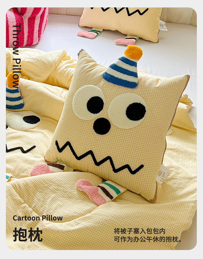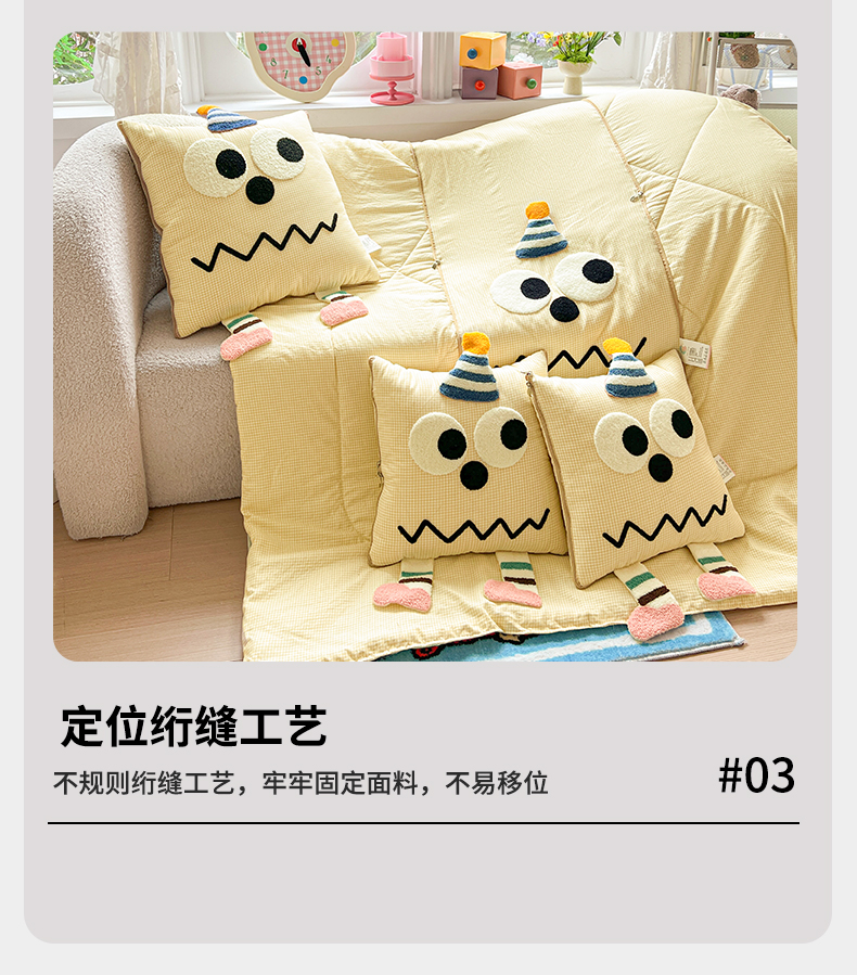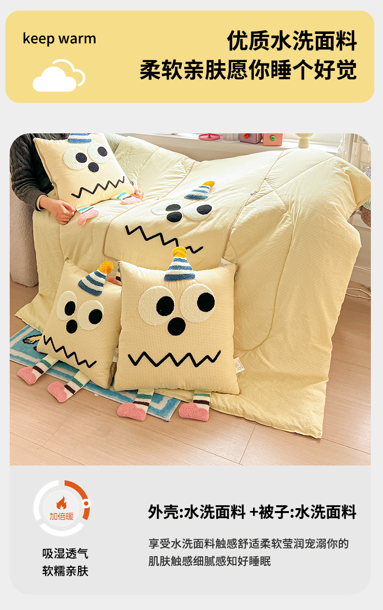 (总)古本家居 2026新款四季款水洗小星人抱枕被,四季小星人绿格,四季小星人粉格,四季小星人黄格,四季小星人蓝格
