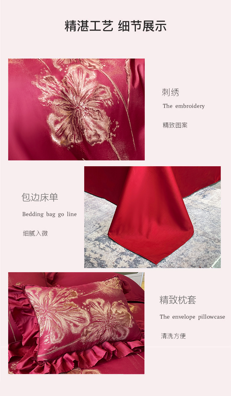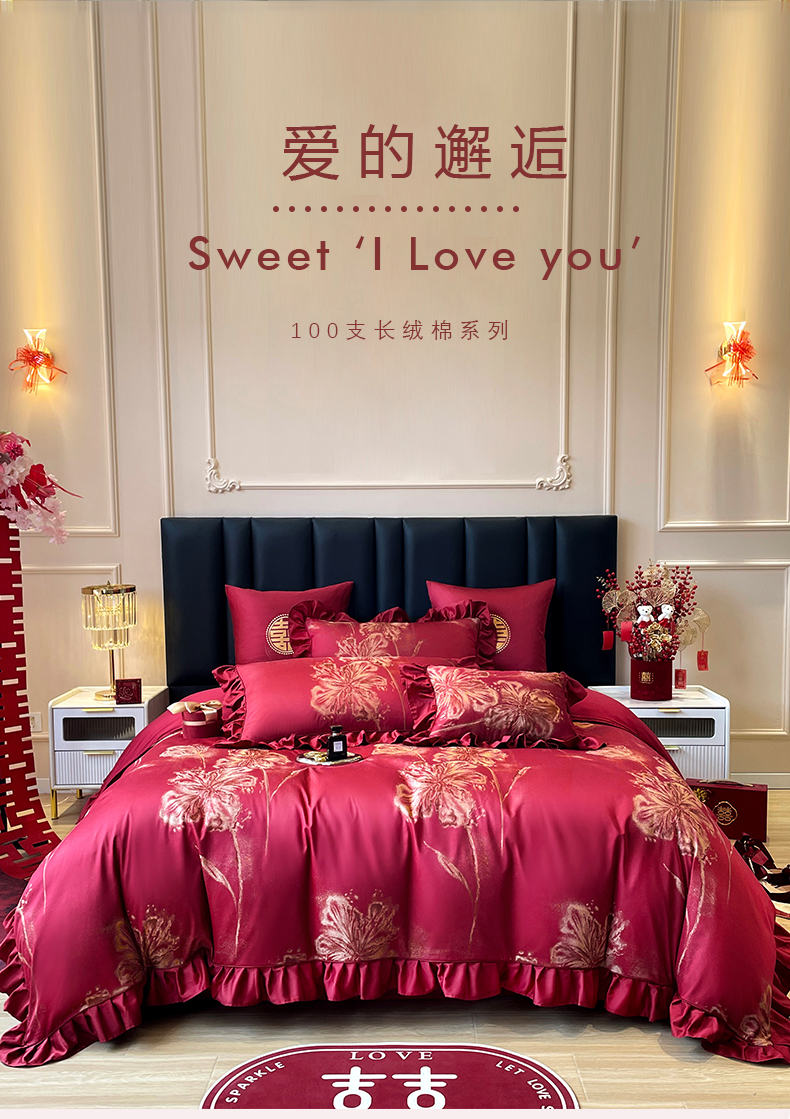 (总)甜咪咪婚庆 2025新款50支长绒棉全棉婚庆床单床盖四件套多件套刺绣工艺,洛可可,爱恋小熊,爱意久久,多子多福,花田喜事,节节高升,克拉恋人,浪漫情怀,怦然心动红,怦然心动玉,甜心玫瑰,温莎公主,伊甸园,醉红妆