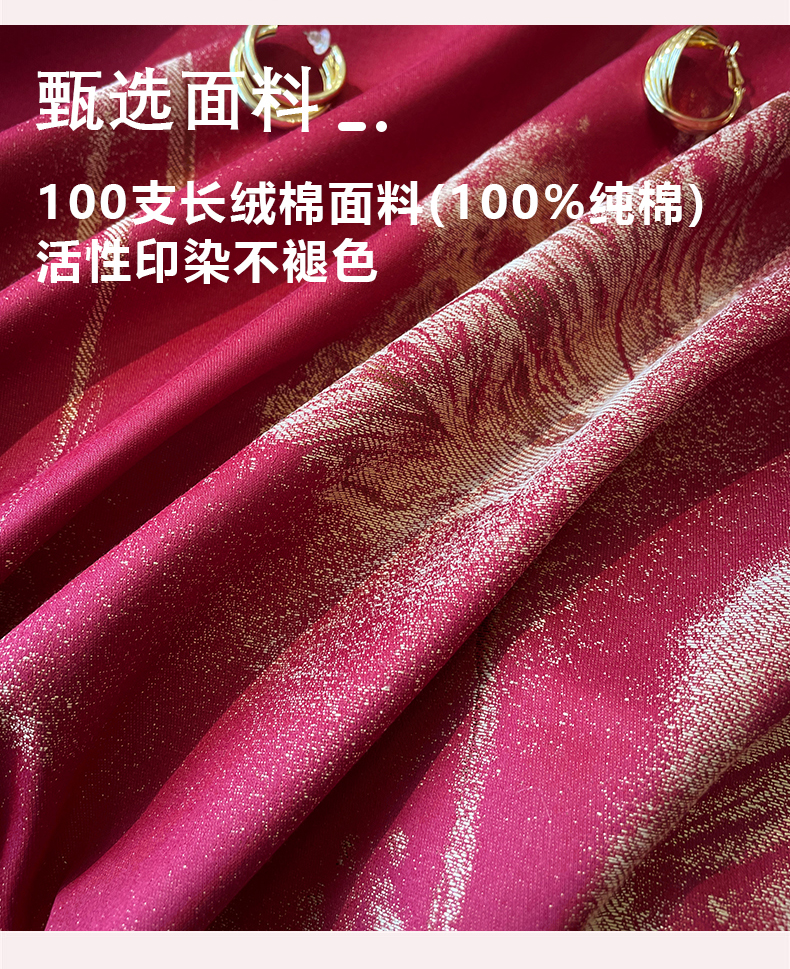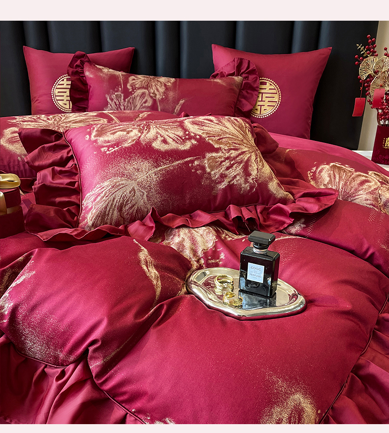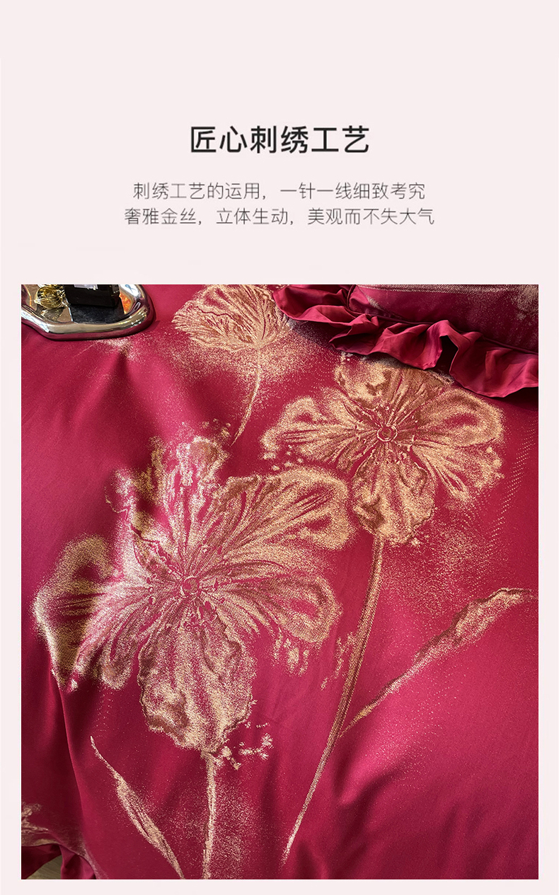商品名称:甜咪咪婚庆 2026春夏新款大提花婚庆结婚四件套多件套床单床笠款 醉玲珑