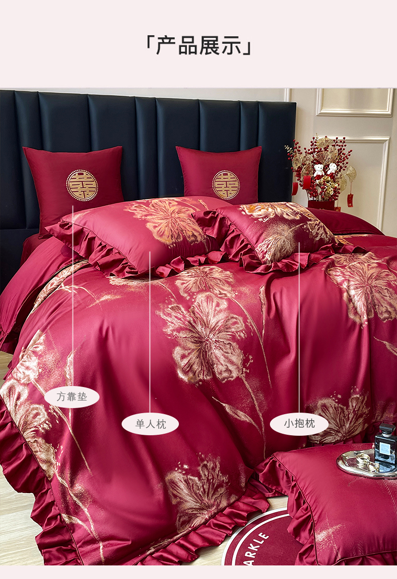 (总)甜咪咪婚庆 2025婚庆新品莱赛尔纤维天丝大提花全棉四件套多件套结婚套件,爱恋,璀璨,繁华,国色,红妆,锦绣,玫瑰,添香,相爱,相守,绚丽,绽放,醉玲珑,相依