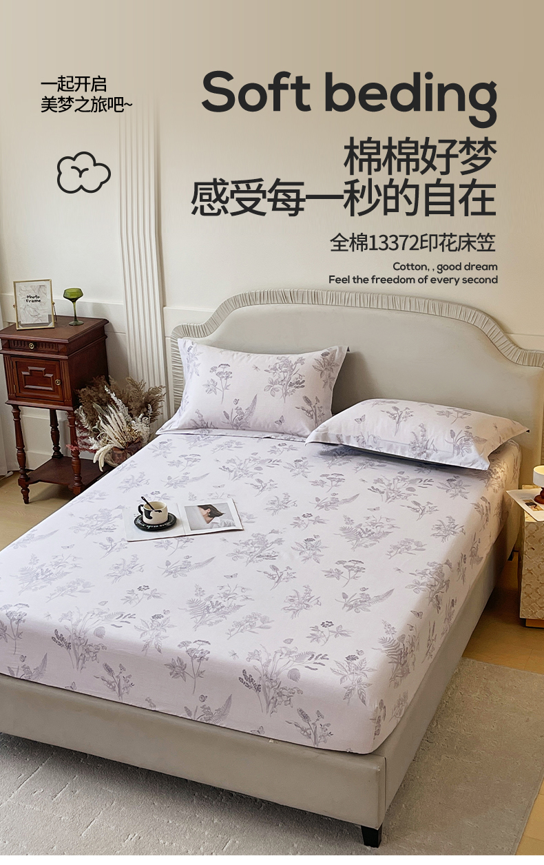 • 91家纺网 家纺一手货源 找家纺 宝齐莱家纺 2026新款全棉纯棉13372印花单床笠床笠单件 清雅