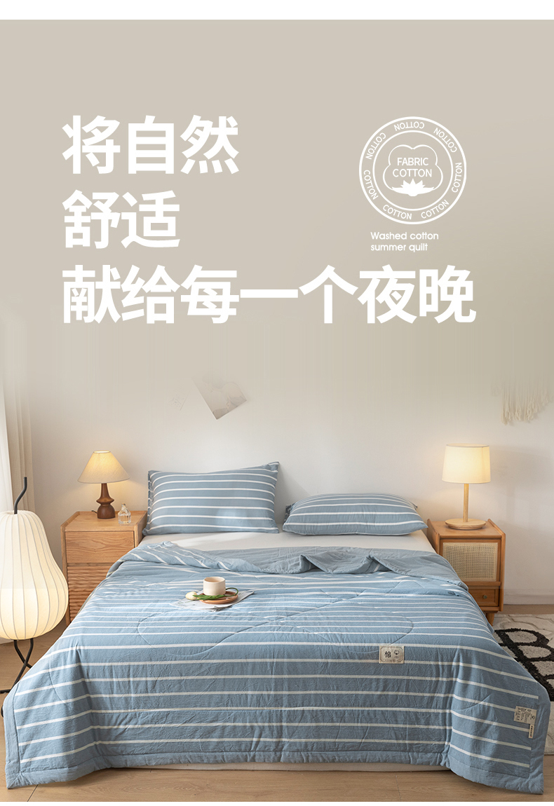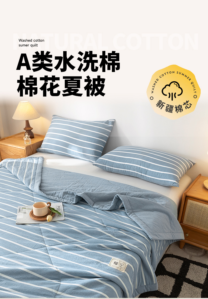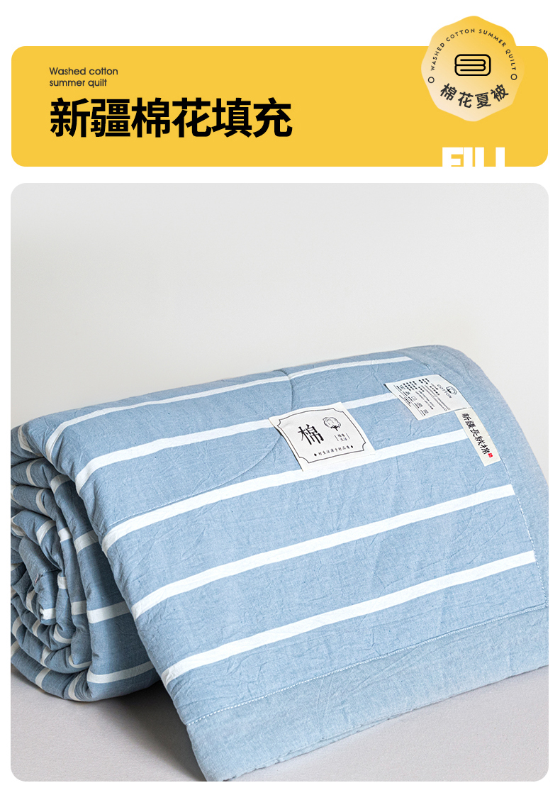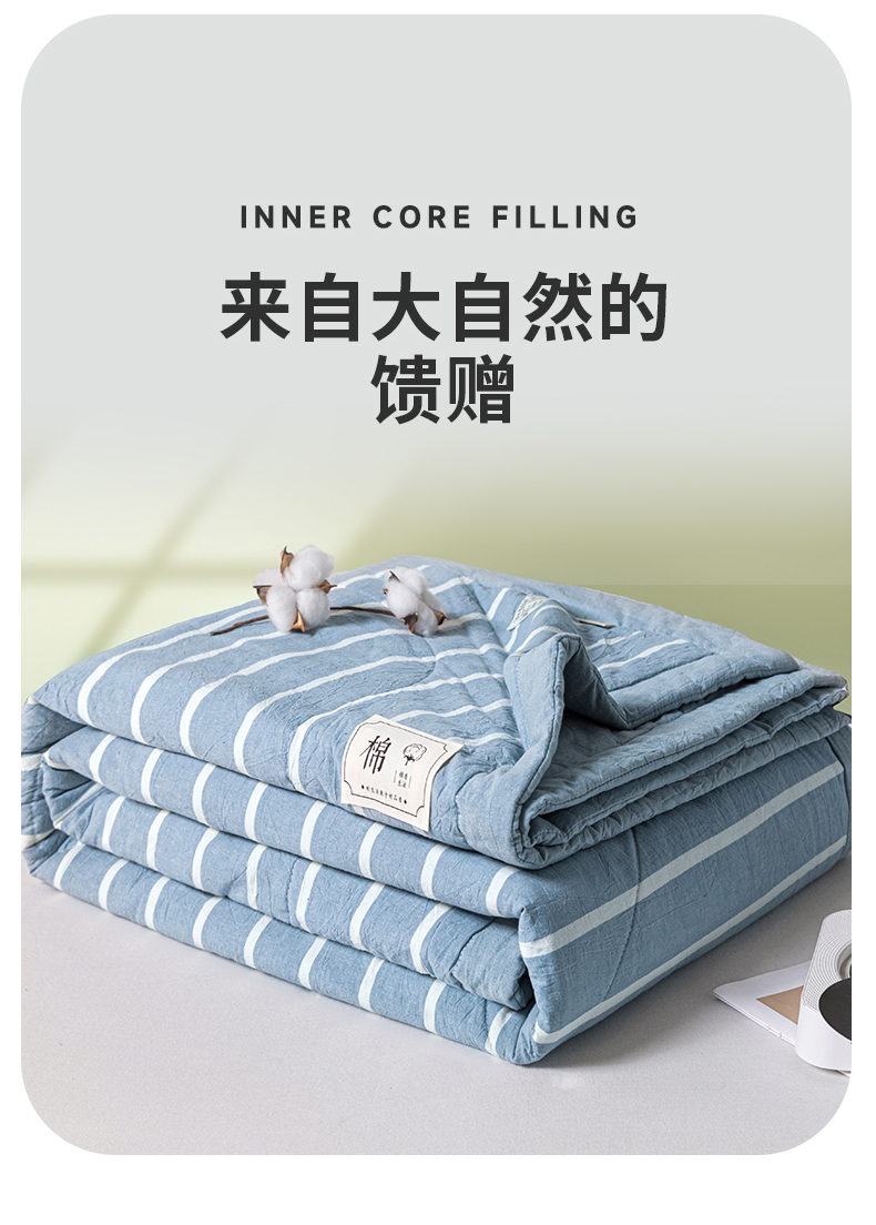 商品名称:爱屋及屋 2026新款无印风新疆棉花夏被夏凉被被子被芯 蓝条纹
