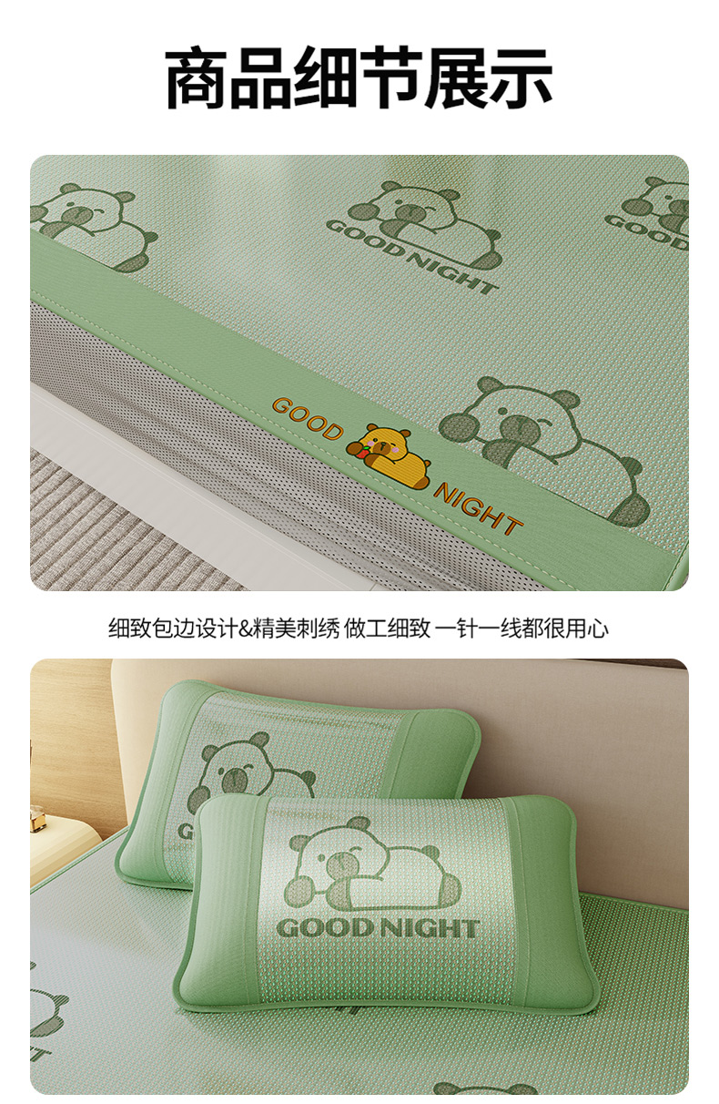 当前位置: 91家纺网 > 商品网购 > 床上用品 > 凉席 > 冰丝席 > 好福居 2026新款冰藤刺绣凉感席凉席-卡皮巴拉款-小熊款 冰藤卡皮巴拉-绿-床笠款