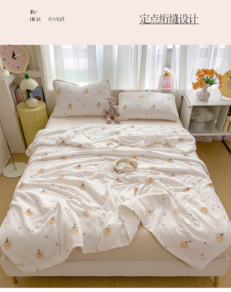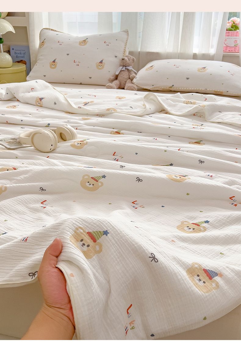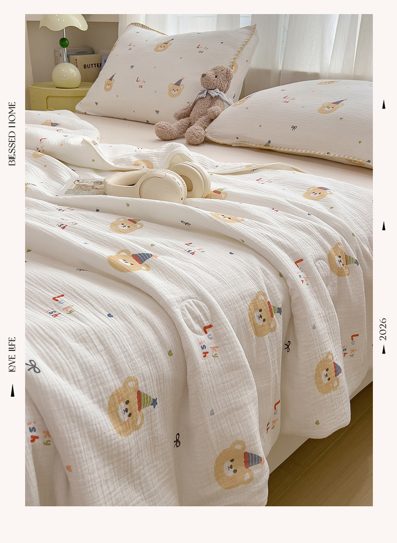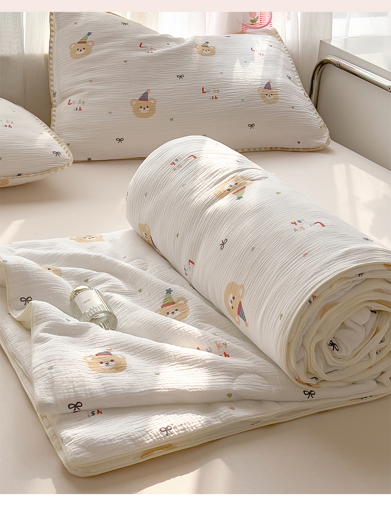 商品名称:兄弟坊 2026春夏新款全棉纯棉印花双层皱皱纱(滚边款)夏被纱布夏凉被午睡被盖毯夏凉被 星熊派