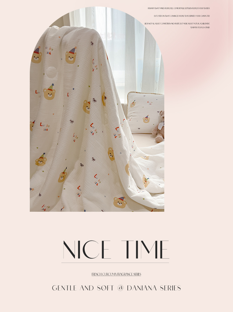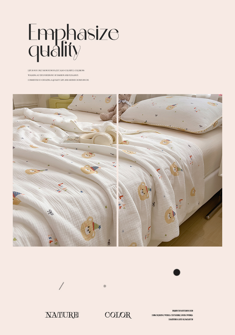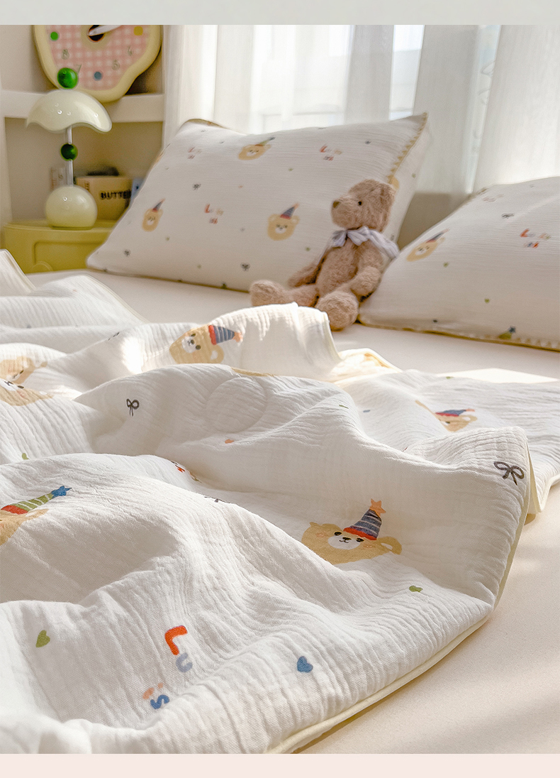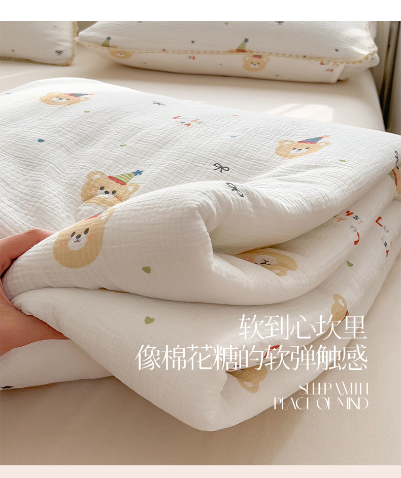 商品名称:兄弟坊 2026春夏新款全棉纯棉印花双层皱皱纱(滚边款)夏被纱布夏凉被午睡被盖毯夏凉被 星熊派