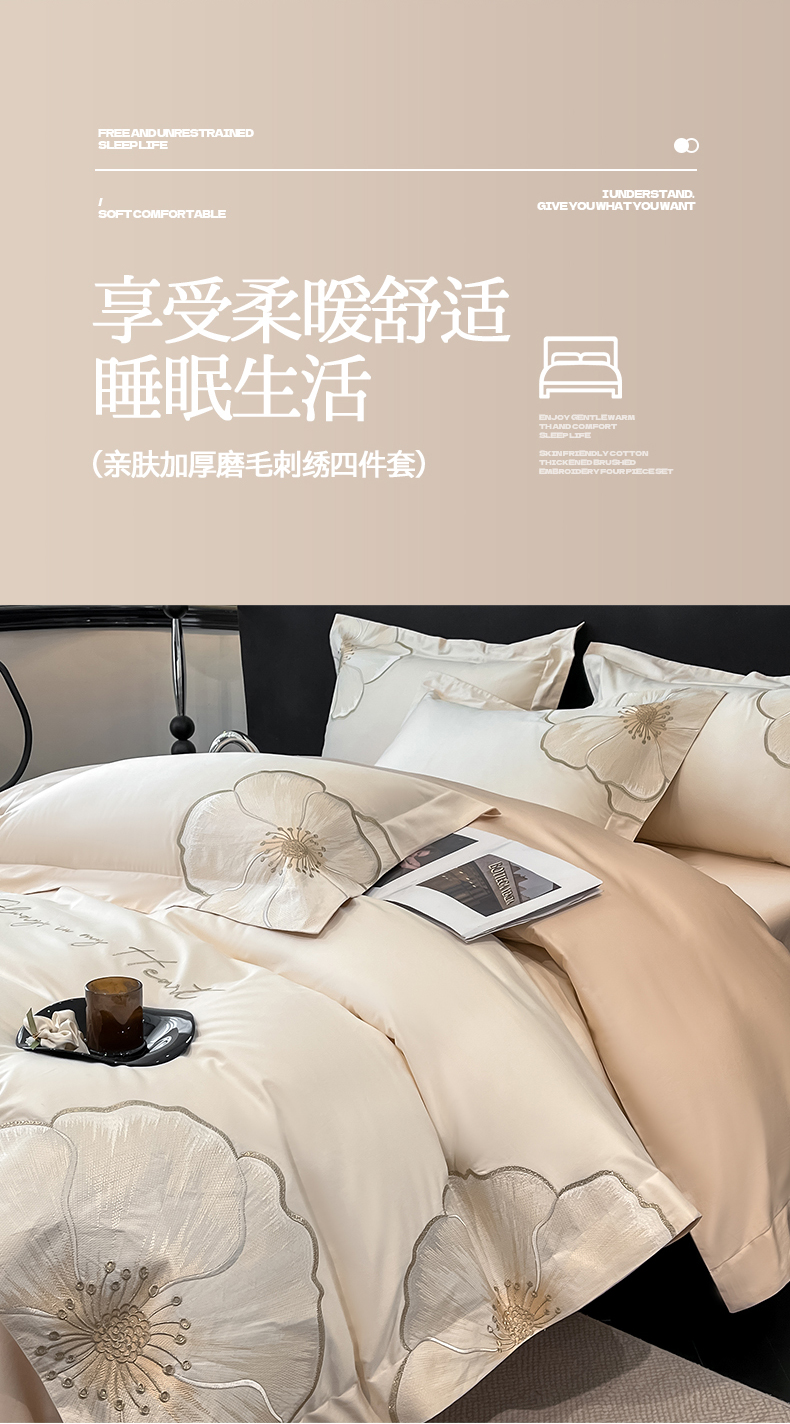 当前位置: 91家纺网 > 商品网购 > 床品套件 > 四件套 > 化纤普通四件套 > 置顶家纺 2026新款亲肤加厚磨毛刺绣四件套-花颜叶语 花颜叶语-白+奶咖
