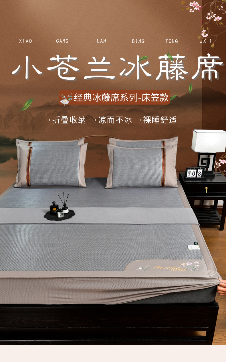 当前位置: 91家纺网 > 商品网购 > 床上用品 > 凉席 > 藤席 > 小牛席业 2026新款小苍兰冰藤席系列(床笠款)凉席藤席冰藤席冰丝席竹席乳胶席 小苍兰清香冰藤席-床笠款(浅蓝)