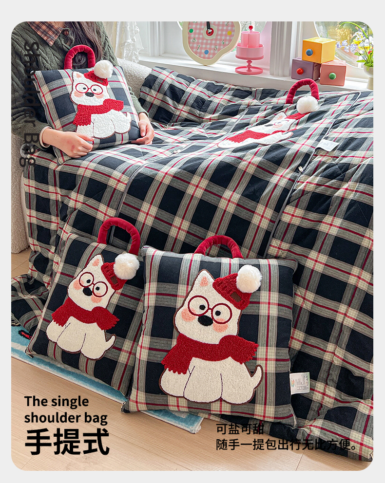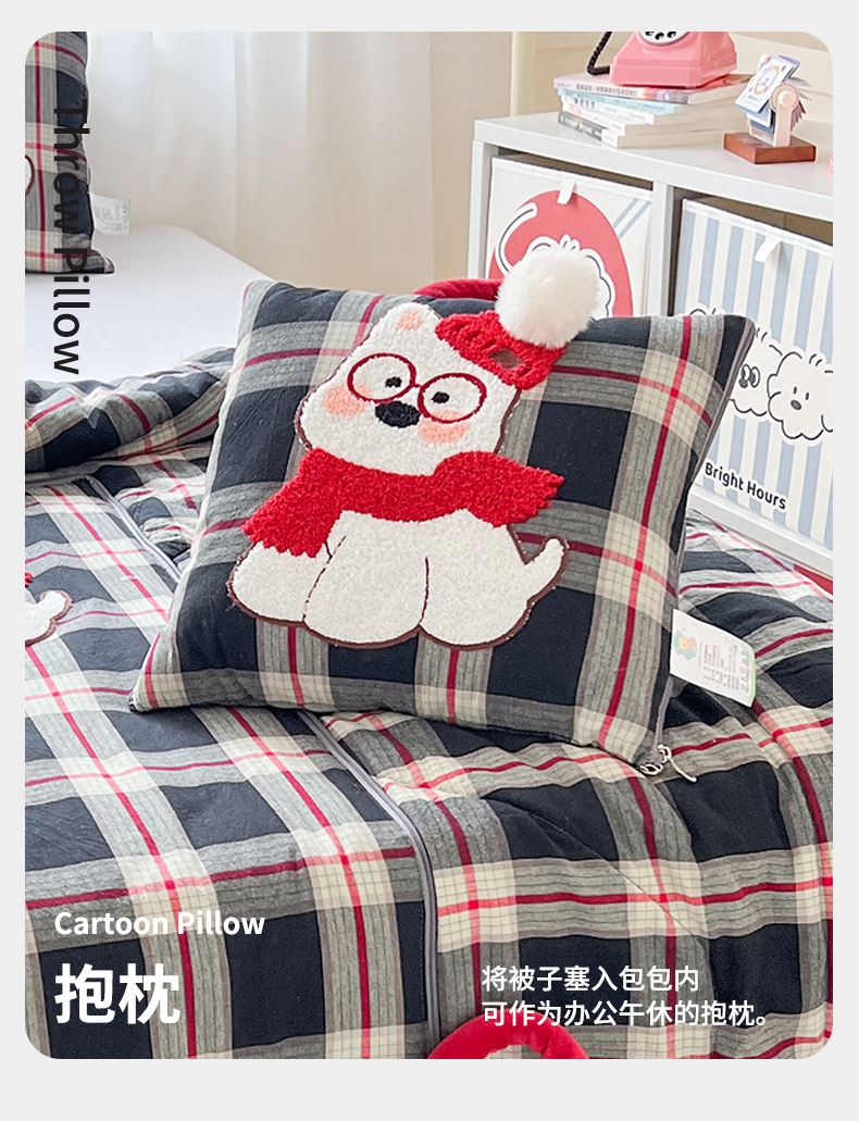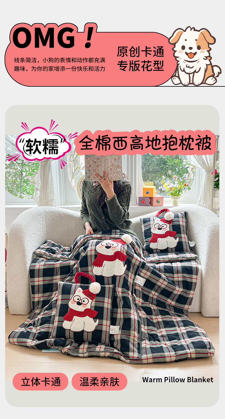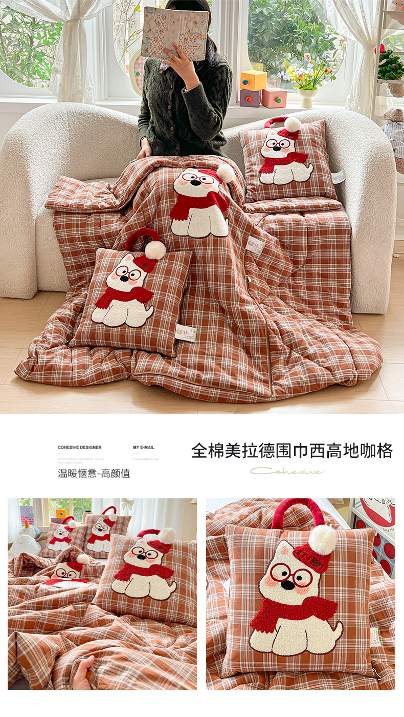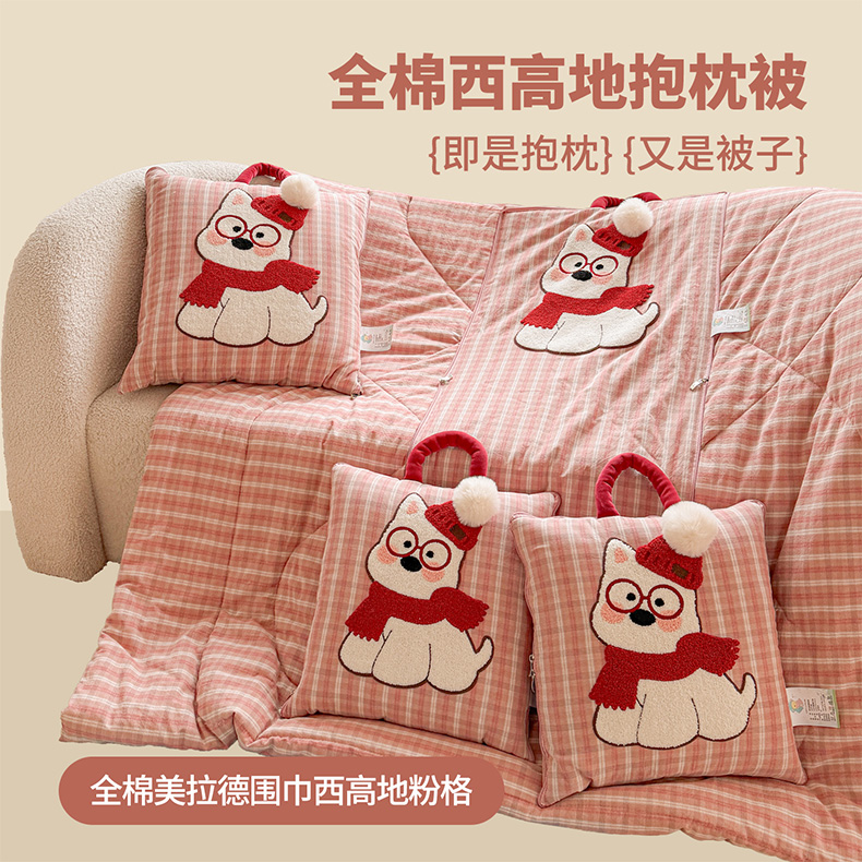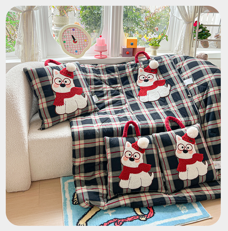 当前位置: 91家纺网 > 商品网购 > 居家日用 > 靠垫/抱枕 > 古本家居 2026春夏新款全棉美拉德西高地系列抱枕被 全棉美拉德围巾西高地黑格
