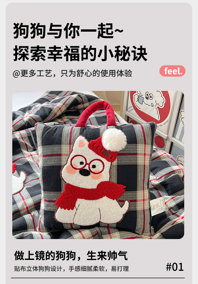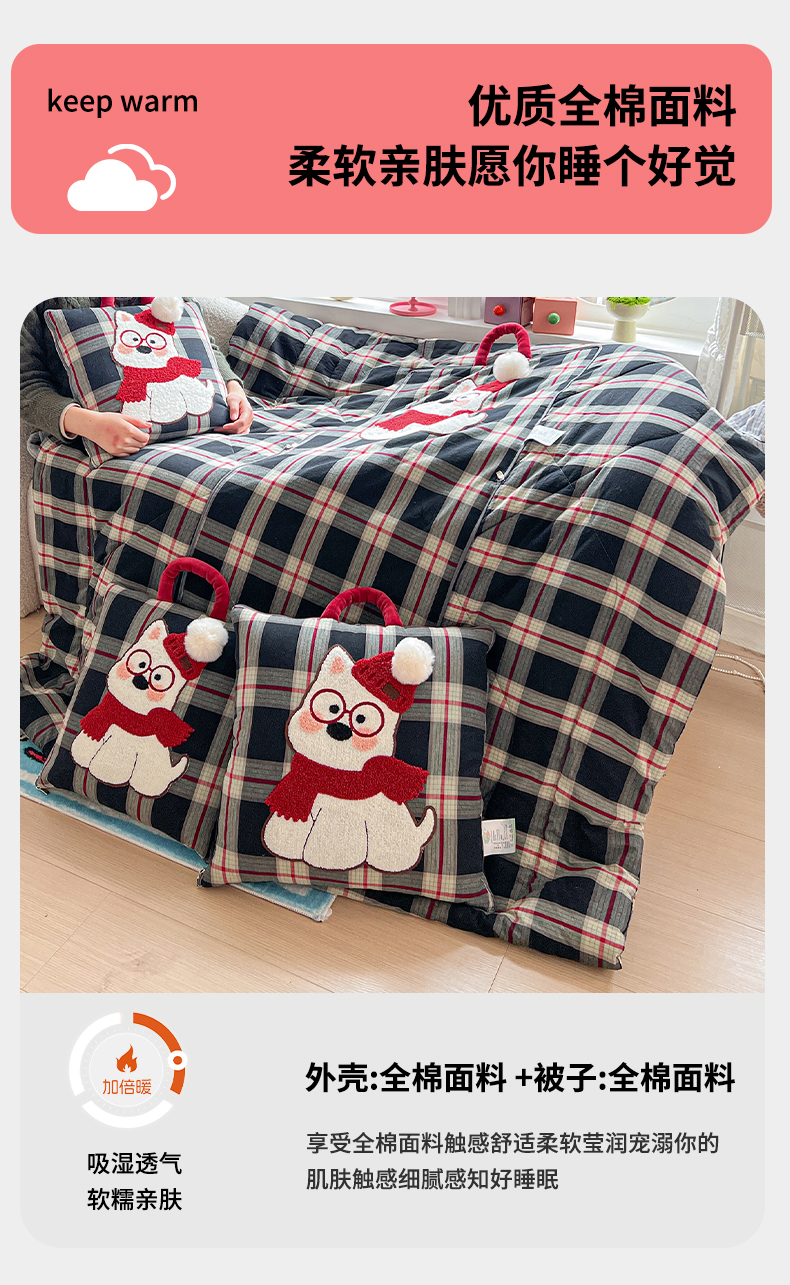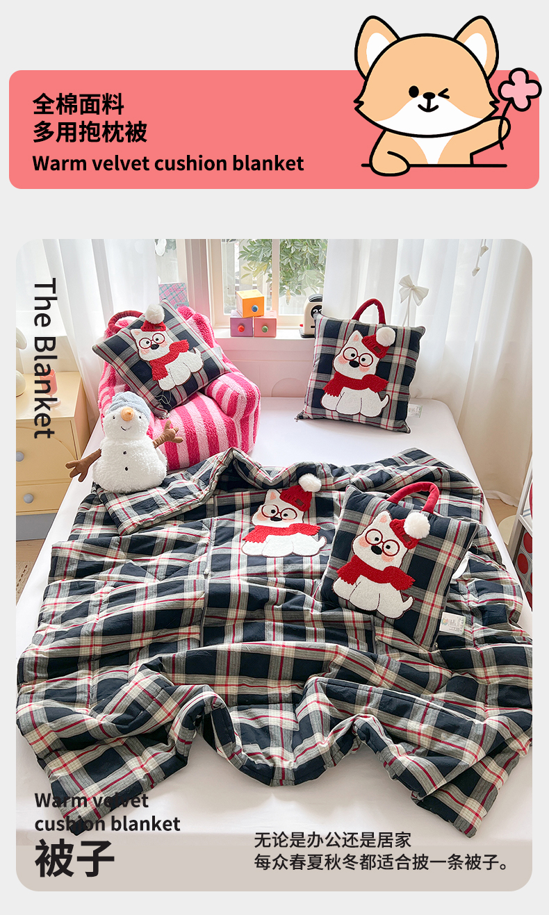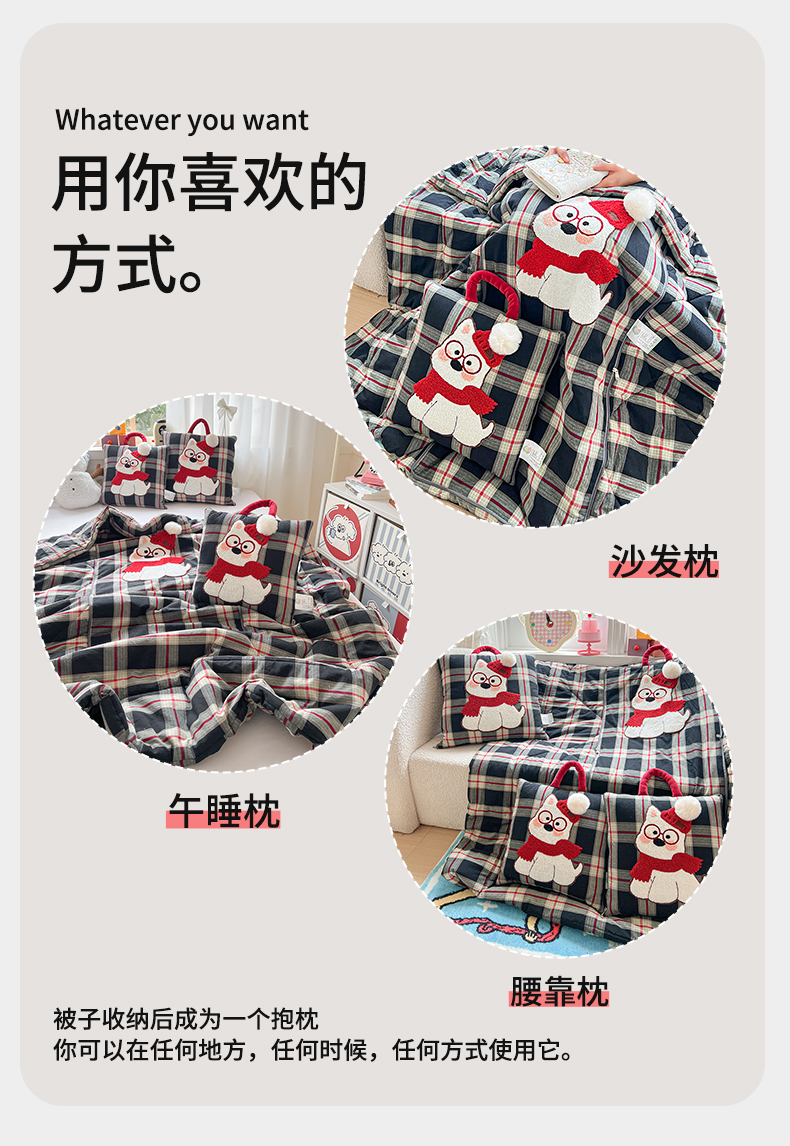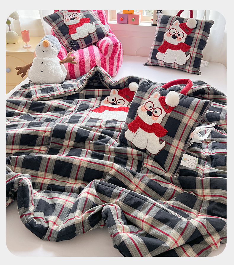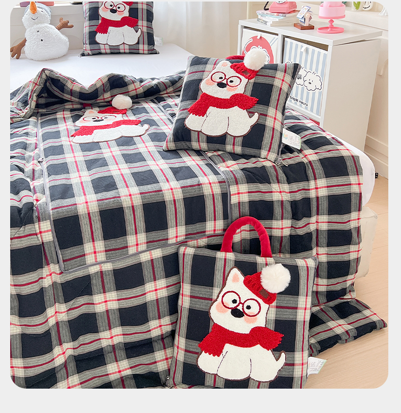 当前位置: 91家纺网 > 商品网购 > 居家日用 > 靠垫/抱枕 > 古本家居 2026春夏新款全棉美拉德西高地系列抱枕被 全棉美拉德围巾西高地黑格