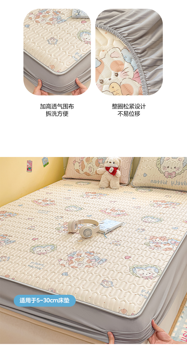 (总)摩妮卡 2026新款水洗棉夹棉防水床褥床垫款三件套,几何-卡其,几何-奶白,几何-浅粉,几何-天蓝