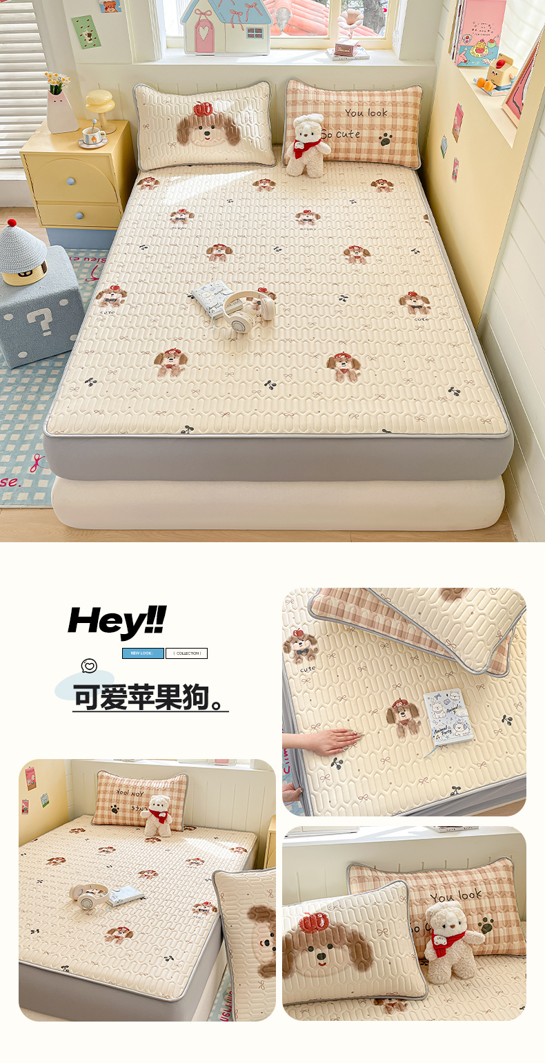 (总)摩妮卡 2026新款水洗棉夹棉防水刺绣爱心床褥床垫款三件套,爱心-奶白,爱心-撑粉,爱心-卡其,爱心-天蓝