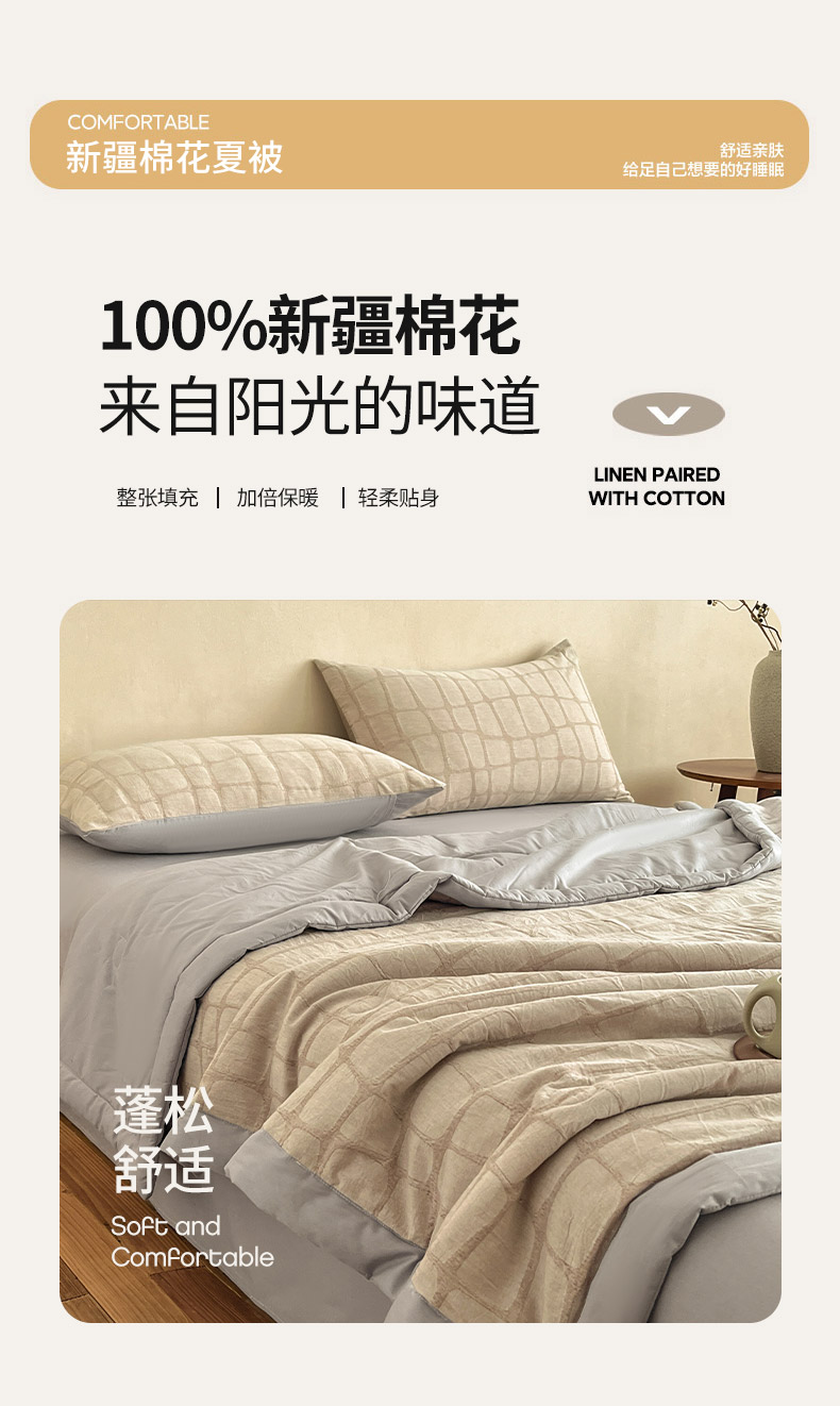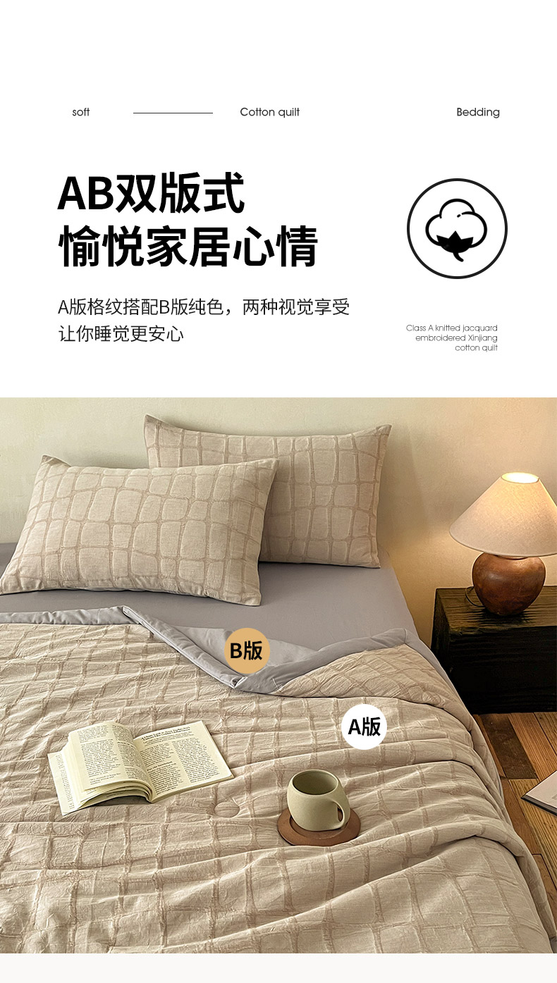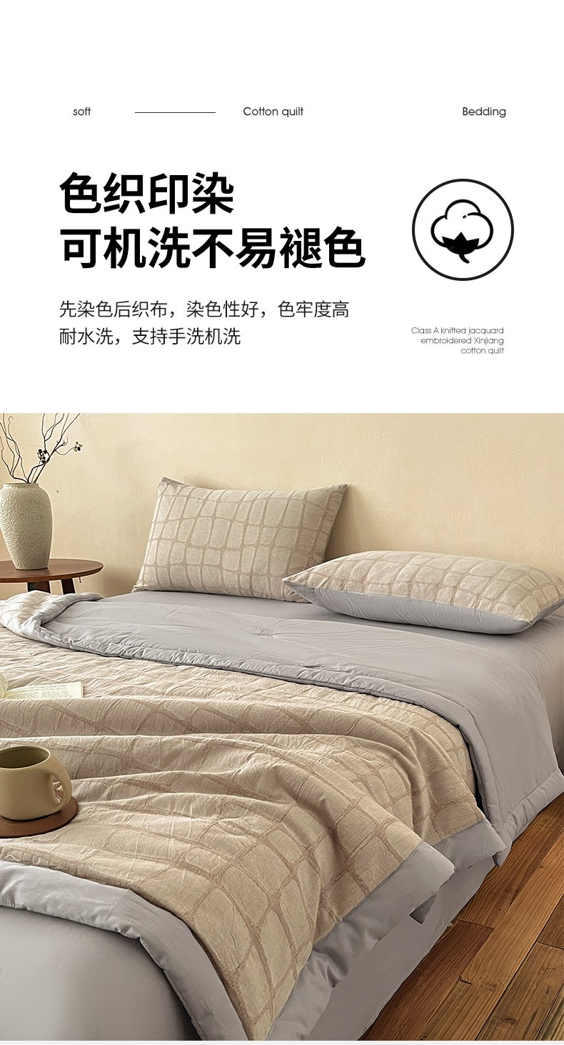 (总)绒城 2026新款全棉纯棉大提花新疆棉花夏被夏凉被空调被四件套-律动,律动-奶咖,律动-浅灰,律动-深灰,律动-天兰