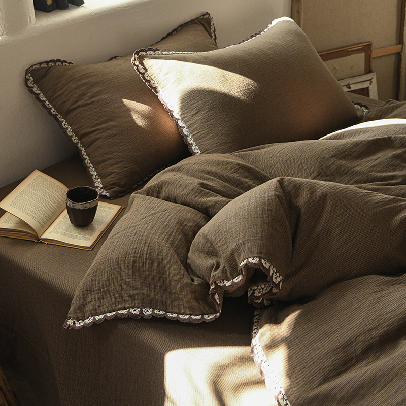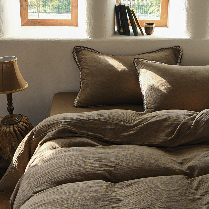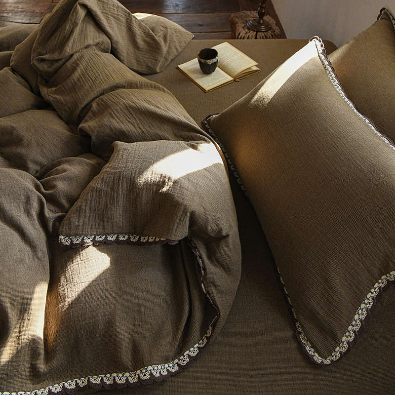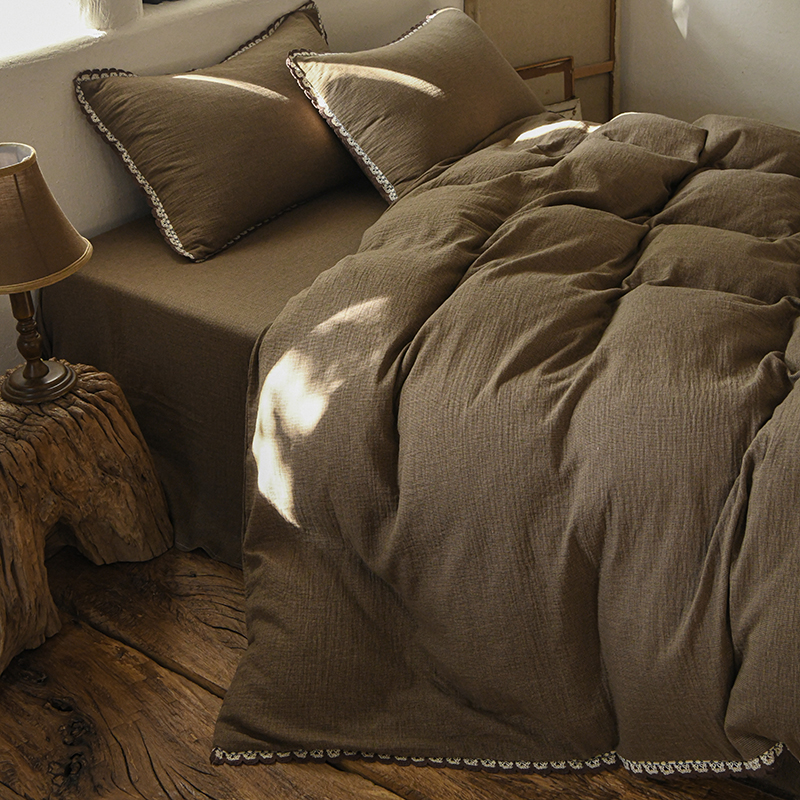 (总)松色家居 2026新款中古侘寂风织物四件套-墨韵森林,墨韵森林-棕