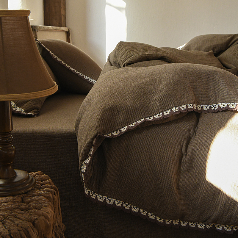 (总)松色家居 2026新款全棉都市风古法织造四件套-格序暖栖,格序暖栖-棕