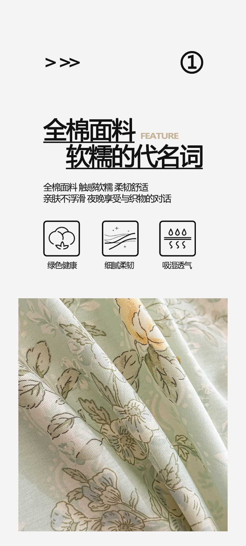 商品名称:涵宸家纺 2026新款全棉印花花卉四件套 春江雾花