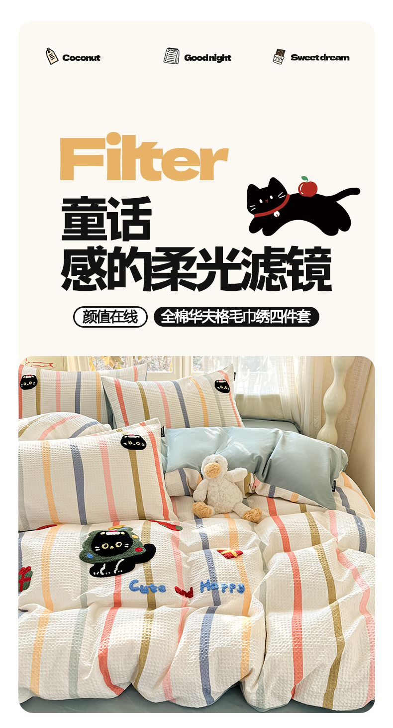 (总)涵宸家纺 2026新款全棉印花毛巾绣四件套,春日郊游,动物派对,活力企鹅,鹿遇时光,南瓜熊,南瓜巡游,暖心小象,甜梦絮语,甜心兔,温柔时光